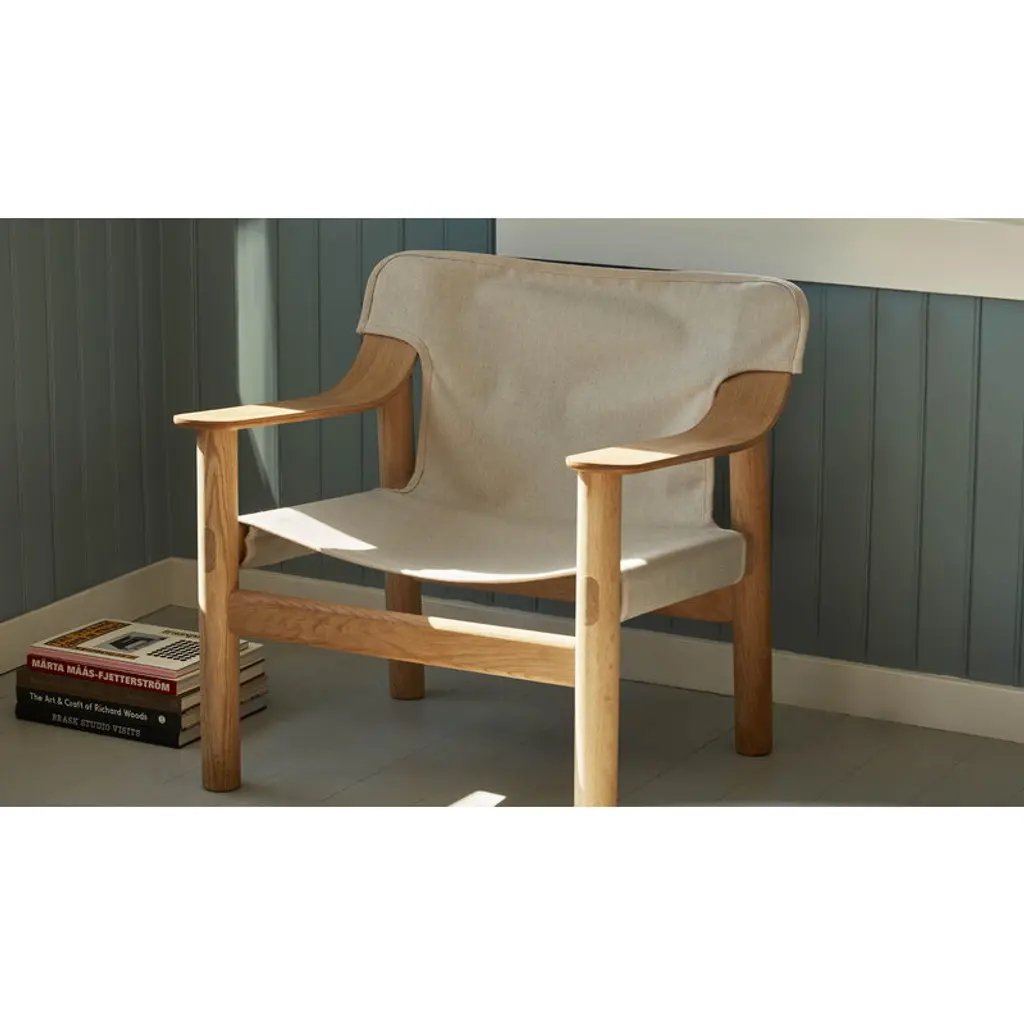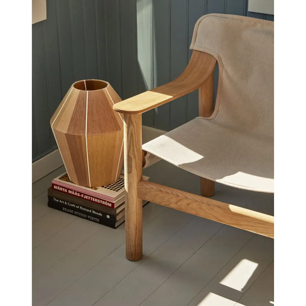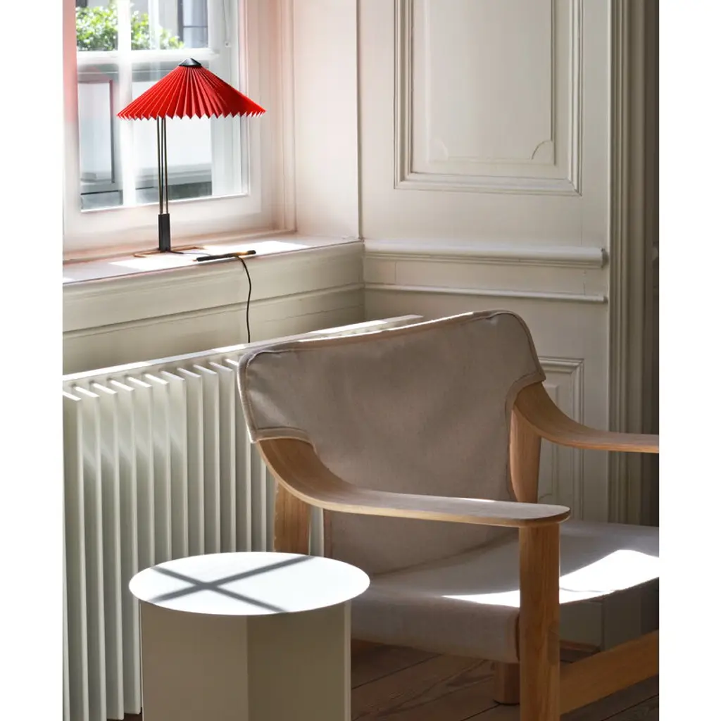 HAY’s Bernard lounge chair pairs a sturdy solid wood frame with a slip-on cover in either durable leather or marine canvas. The union of two contrary elements gives the chair a distinctive, lively appearance. Designed by Shane Scheck, Bernard is a fresh and contemporary lounge chair for multiple environments. The relaxed yet upright design of the chair looks great by any coffee table as well as in the corner of the bedroom, and it can also be used in pairs or groups. In 2021, HAY renewed the surface treatments of its wood furniture by replacing the paints and lacquers with more environmentally friendly, water-based alternatives. Please note that due to this, natural wood furniture now comes with only one lacquer option instead of the previous two: the new water-based lacquer is glossier than the matte lacquer previously used, but slightly more matte than HAY’s previous clear lacquer.