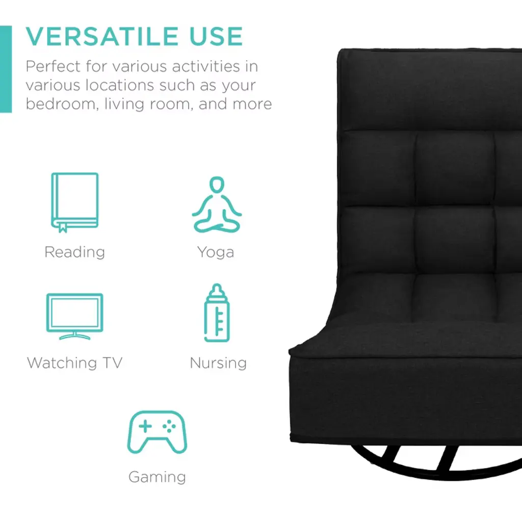 Take a seat in a chair that's both comfortable & fun. Gaming, relaxing, or catching your favorite show - this adjustable chair keeps you comfortable no matter your lounging need! Versatile use makes it perfect for various activities in various locations such as your bedroom, living room, and more. With a 360° swivel function + adjustable backrest, this seat is perfect for yoga, nursing, watching TV, or reading! A sturdy frame and linen fabric with tufted cushioning provide lasting comfort, while floors are kept safe with the removable base/bottom cover. Comfortable cushions are set over a durable steel frame that holds up to 285 lbs. for a durable build, while folding functionality means easy storage in the closet or other compact spaces to keep it out of the way after use. So, look no further for a seat built with a foldable design to suit your needs in any moment.
