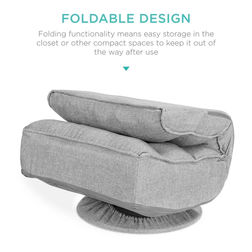 Take a seat in a chair that's both comfortable & fun. Gaming, relaxing, or catching your favorite show - this adjustable chair keeps you comfortable no matter your lounging need! Versatile use makes it perfect for various activities in various locations such as your bedroom, living room, and more. With a 360° swivel function + adjustable backrest, this seat is perfect for yoga, nursing, watching TV, or reading! A sturdy frame and linen fabric with tufted cushioning provide lasting comfort, while floors are kept safe with the removable base/bottom cover. Comfortable cushions are set over a durable steel frame that holds up to 285 lbs. for a durable build, while folding functionality means easy storage in the closet or other compact spaces to keep it out of the way after use. So, look no further for a seat built with a foldable design to suit your needs in any moment.