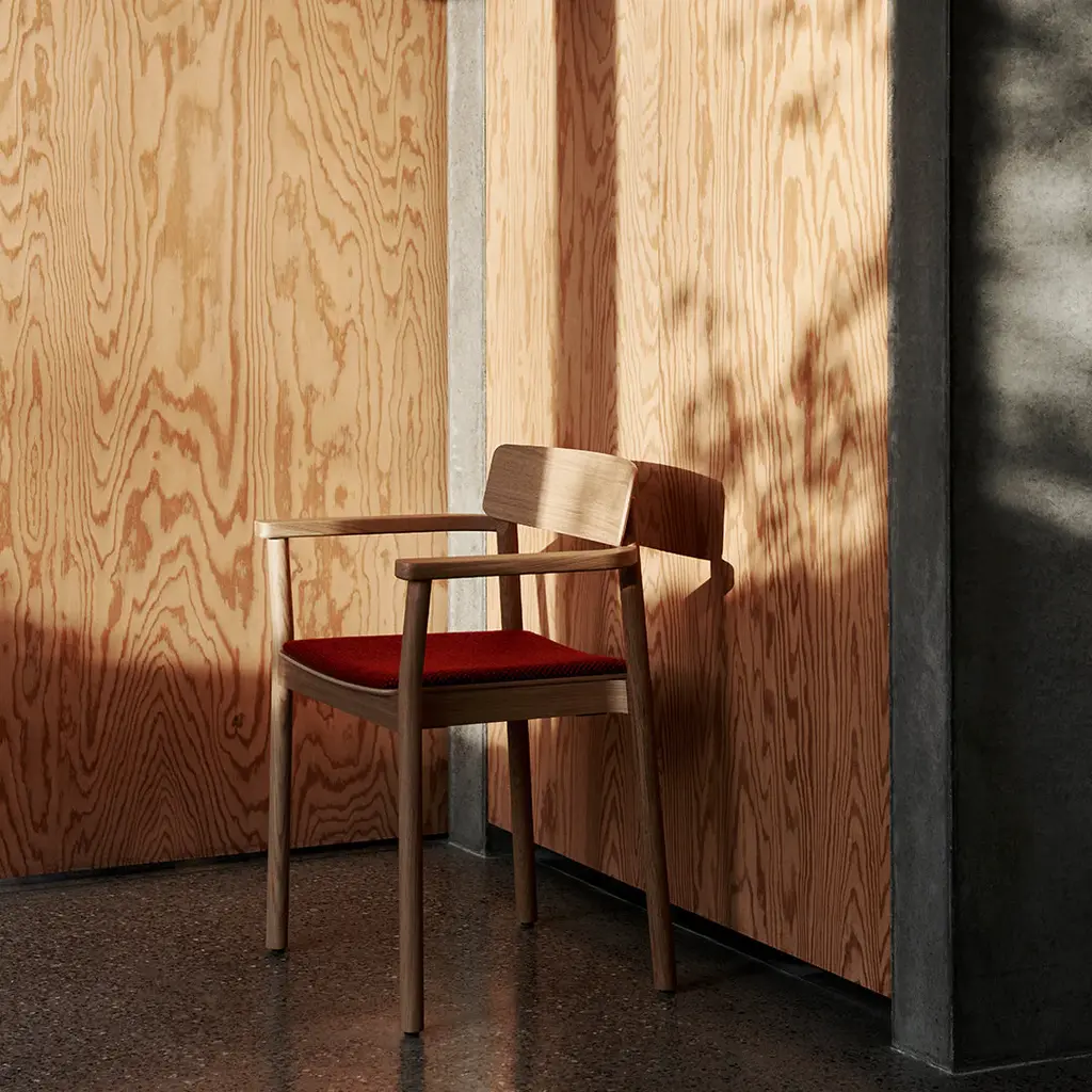 Named after the Betty Nansen theatre in Copenhagen, this armchair's sturdy frame is crafted from lacquered oak. The webbed seat – whose straps are made from natural linen fibres and woven by hand – offers a soft, cushioned base. The Betty armchair is available in solid wood or wood with webbing.