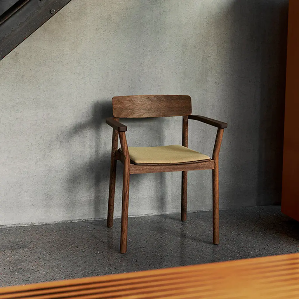 Named after the Betty Nansen theatre in Copenhagen, this armchair's sturdy frame is crafted from lacquered oak. The webbed seat – whose straps are made from natural linen fibres and woven by hand – offers a soft, cushioned base. The Betty armchair is available in solid wood or wood with webbing.
