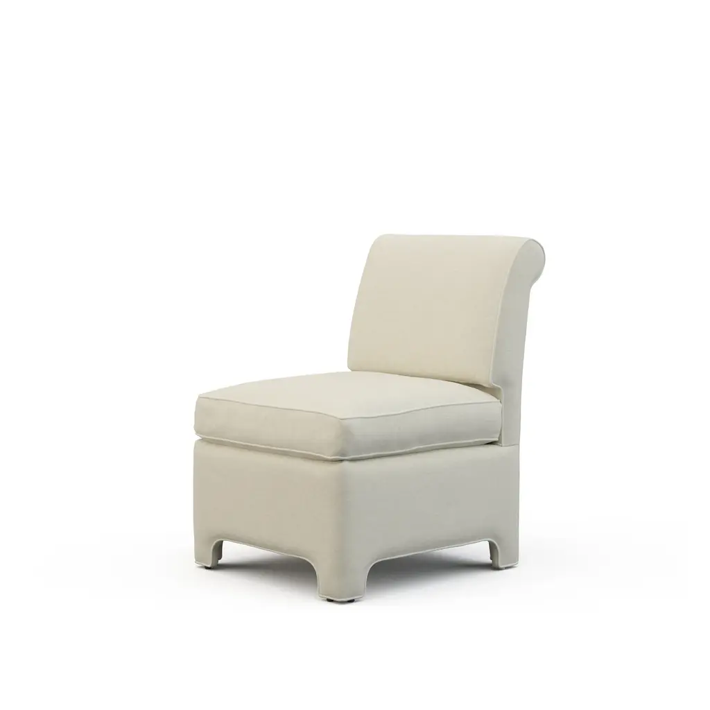 A 1940's decorator classic, the Billie Chair brings retro style to any room with its compact yet comfortable armless silhouette. Perfectly proportioned and featuring a soft down-blend seat, this small accent chair is ideal for adding vintage charm to your living room or any space needing a stylish accent. Experience both comfort and timeless design with the Billie Chair, a perfect choice for those seeking a unique and functional addition to their home decor. Ships In 8-10 Weeks Contrast welt Tight back One loose seat cushion As Shown Fabric: Rayburn Oatmeal with Belgrade Cream contrast welt, Wisdom Green with Belgrade Cream contrast welt (lifestyle) If you choose to purchase COM, once you have placed your order a customer service rep will contact you regarding where to send your fabric. Please note that current lead time is 17-19 weeks once your fabric arrives at the factory, and if unused fabric is under 1.5 yards, it cannot be sent back to you.This product can be special ordered in additional fabrics, leathers, and cushion fillings. Click here to email us for for additional information about special ordering.This image is for illustrative purposes only. The colors shown are accurate within the constraints of lighting, photography, and the color accuracy of your screen.
