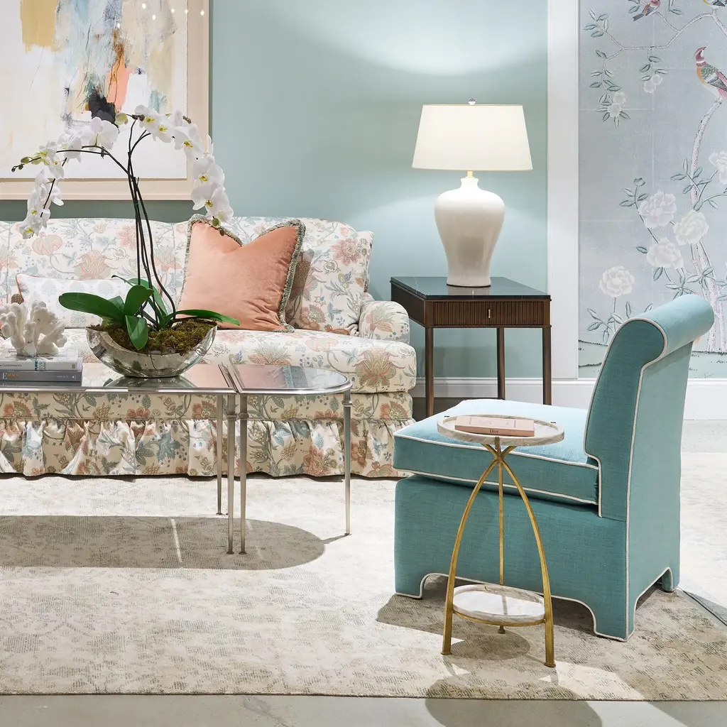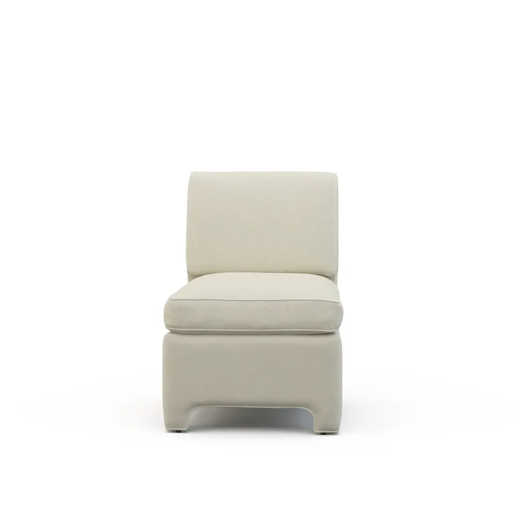 A 1940's decorator classic, the Billie Chair brings retro style to any room with its compact yet comfortable armless silhouette. Perfectly proportioned and featuring a soft down-blend seat, this small accent chair is ideal for adding vintage charm to your living room or any space needing a stylish accent. Experience both comfort and timeless design with the Billie Chair, a perfect choice for those seeking a unique and functional addition to their home decor. Ships In 8-10 Weeks Contrast welt Tight back One loose seat cushion As Shown Fabric: Rayburn Oatmeal with Belgrade Cream contrast welt, Wisdom Green with Belgrade Cream contrast welt (lifestyle) If you choose to purchase COM, once you have placed your order a customer service rep will contact you regarding where to send your fabric. Please note that current lead time is 17-19 weeks once your fabric arrives at the factory, and if unused fabric is under 1.5 yards, it cannot be sent back to you.This product can be special ordered in additional fabrics, leathers, and cushion fillings. Click here to email us for for additional information about special ordering.This image is for illustrative purposes only. The colors shown are accurate within the constraints of lighting, photography, and the color accuracy of your screen.