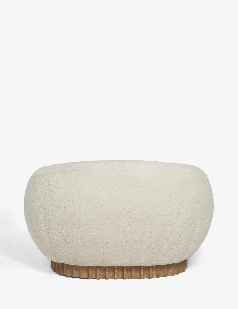 This plush, overstuffed chair offers an inviting spot to cozy up. Set on a rippled wooden plinth base, the boucle upholstery and contoured shape ground this lounge chair a cloud-like softness. This piece is from our exclusive Sarah Sherman Samuel collaboration and features all the trademarks of her warm, edited style.