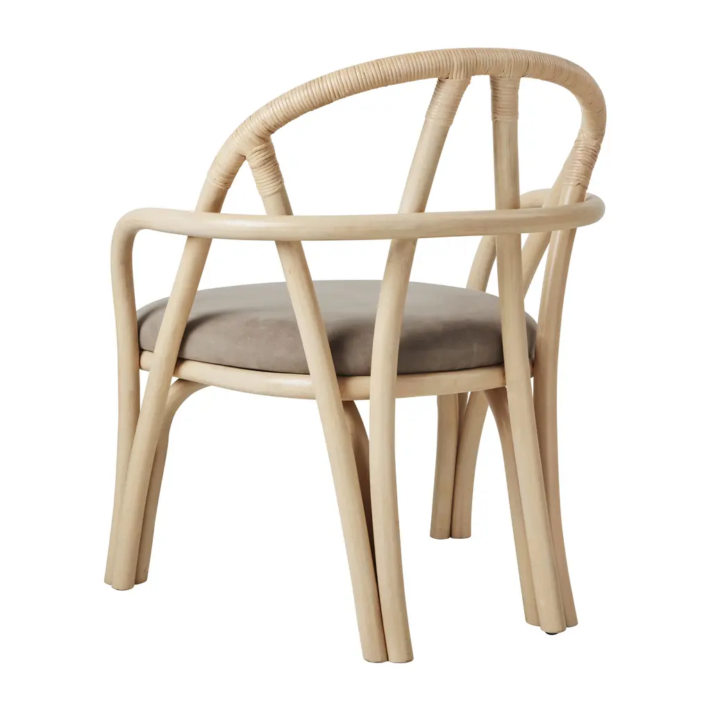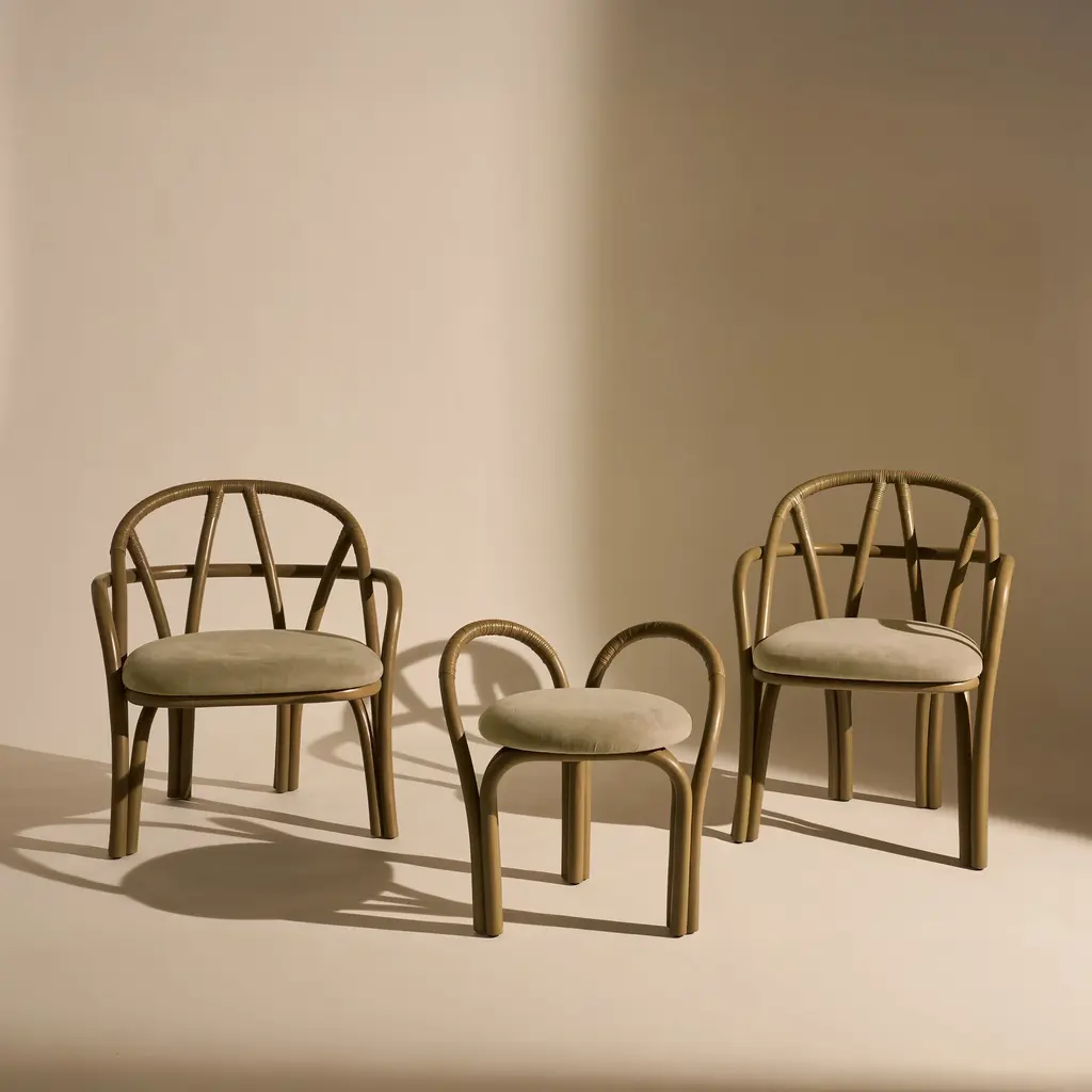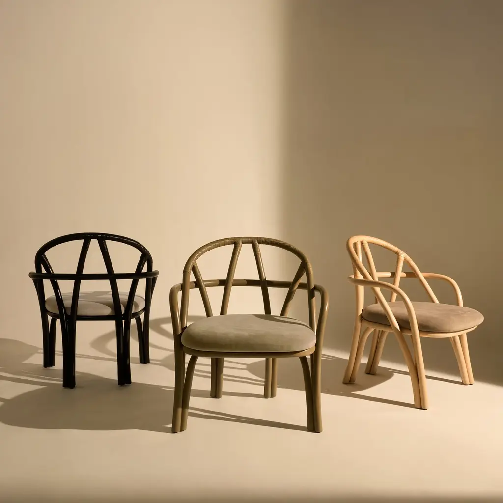 The Bistra Lounge Chair from Gubi, designed by AMDL Circle, reinterprets the classic bistro chair through a sculptural lens. Crafted from steam-bent rattan, its minimalist form showcases a gracefully curved backrest and armrests, supported by a distinctive double-fork base. This design not only emphasizes the beauty of natural materials but also introduces a sense of organic growth, making it a timeless addition to any modern interior. Highlights