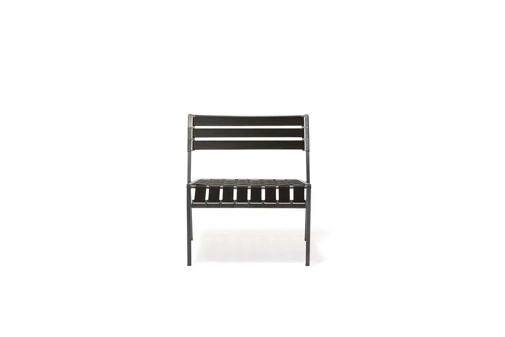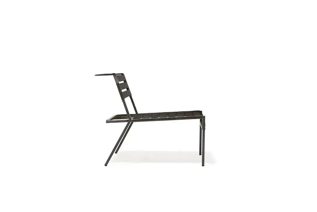 Inspired by weekend visits to the stark desert landscapes found a few hours east of Los Angeles, the Outdoor Collection by Stephen Kenn is composed of steel frames that have been zinc primed and powder coated for rust resistance, interwoven stretch webbing for a soft and springy seating experience, and UV and weather resistant Sunbrella Heritage fabric. This version features black webbing and a charcoal frame; custom dimensions, materials, and finishes are available. The perfect place for a long afternoon reading outdoors, the Lounge Chair has a low profile and a bouncy seat feel. If purchased as a set, chairs can be stacked for ease of storage.Every Stephen Kenn piece is made to order through our Los Angeles studio in partnership with a number of small businesses and fabricators in the LA area. With this highly customizable pool chaise you can select from a wide range of finishes and materials to complement your home and lifestyle.