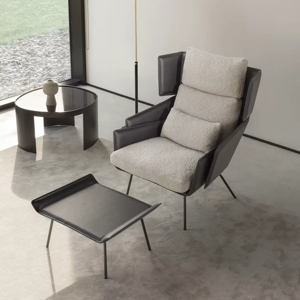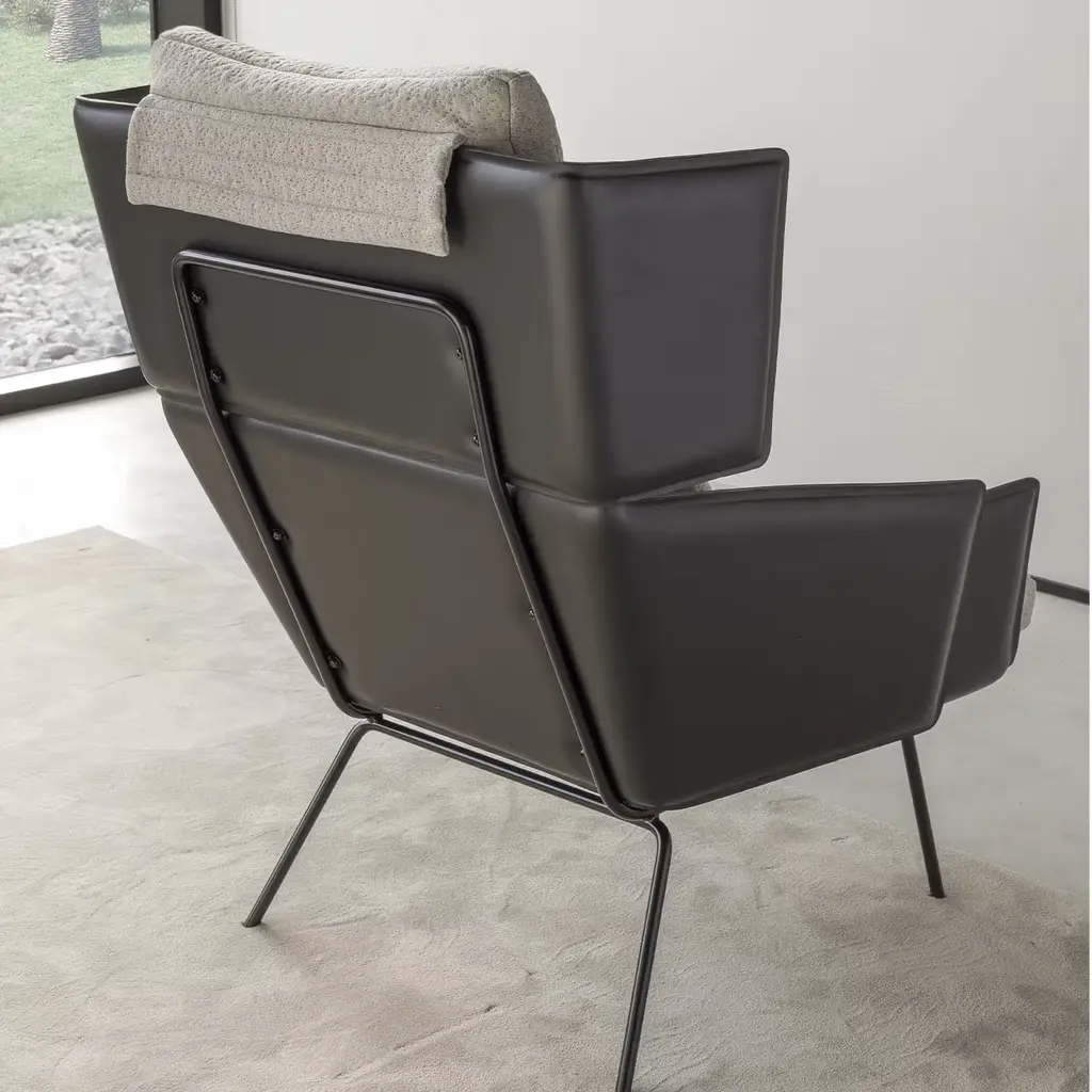 Characterized by its captivating design and impeccable craftsmanship, this fiberglass high armchair, enveloped in luxurious leather, embodies sophistication and elegance. Boasting a soft, high-density foam seat, it offers unrivaled comfort and style. Designed by Palomba Serafini, this piece seamlessly blends form and function, making it a standout addition to any space. Decorative cushions are not included with purchase.