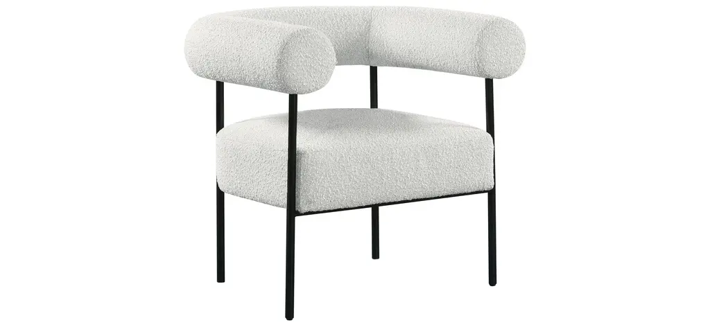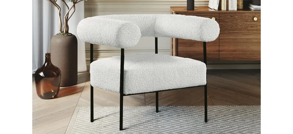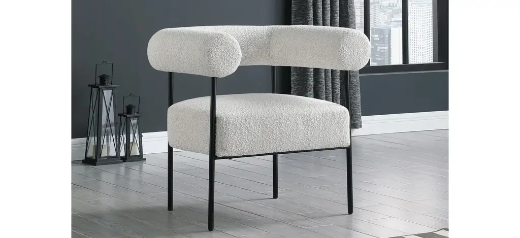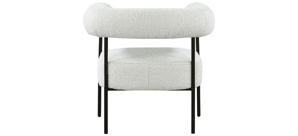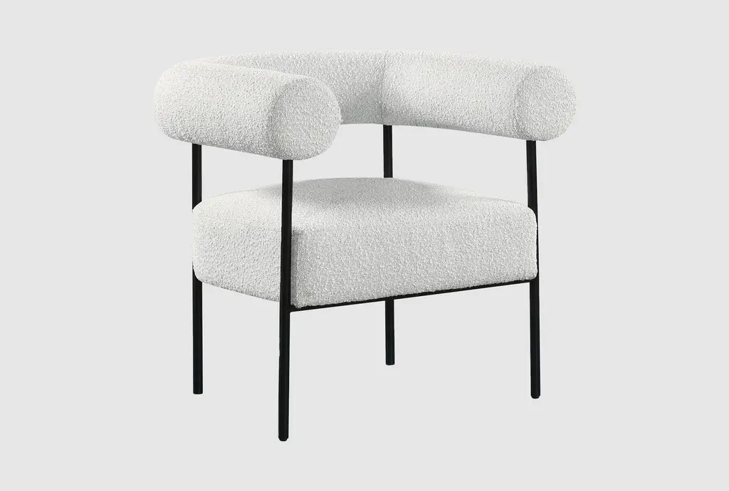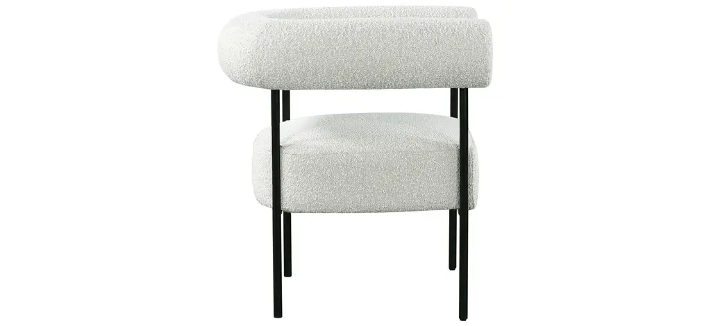 Modernize your home with this Blake Accent Chair. Featuring rich boucle fabric and a matte black metal frame, its contemporary design is sure to catch the eye of all your house guests.