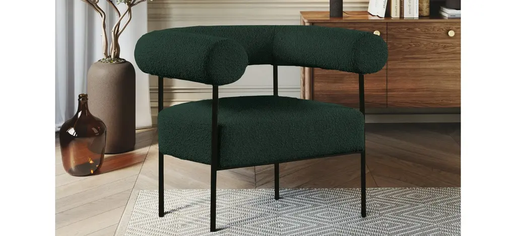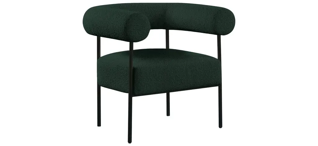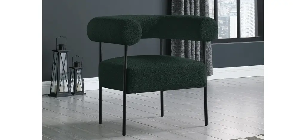 Modernize your home with this Blake Accent Chair. Featuring rich boucle fabric and a matte black metal frame, its contemporary design is sure to catch the eye of all your house guests.