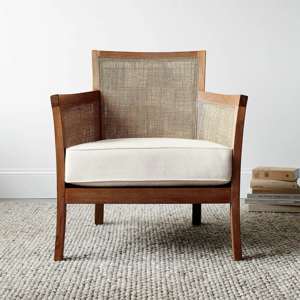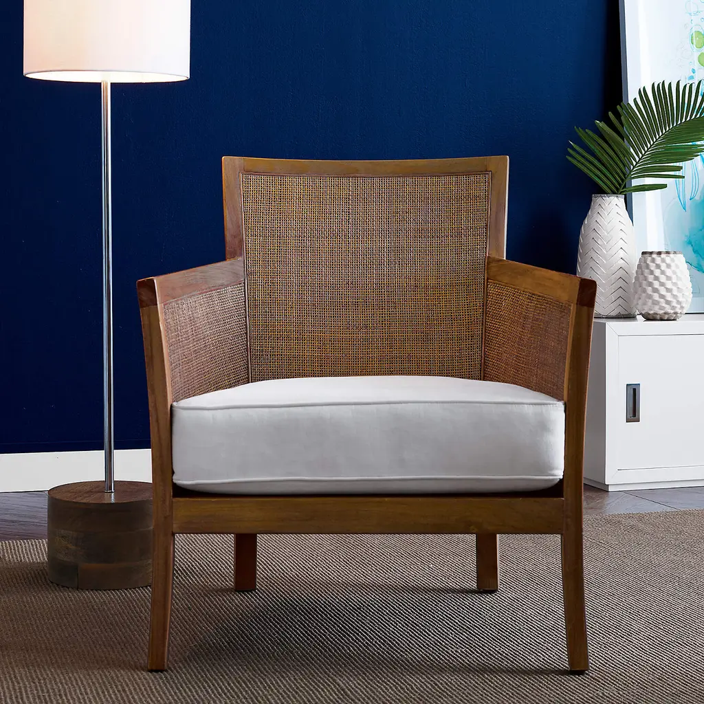 Blake Light Brown Rattan Accent Chair with Fabric Cushion