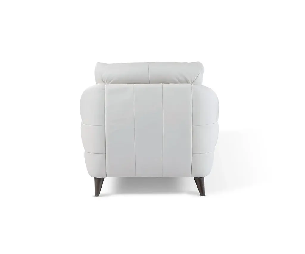 Made in Italy, the Blanca Chair features a unique combination of curves, tufting and a channel-backed design. The eye-catching ebb and flow of this piece evokes thoughts of classic mid-century modern lines. Tapered wooden cone legs and stylish tufting cement this mod style, while the height of the back and overall slim design of this leather chair promise a comfortable seating experience.
