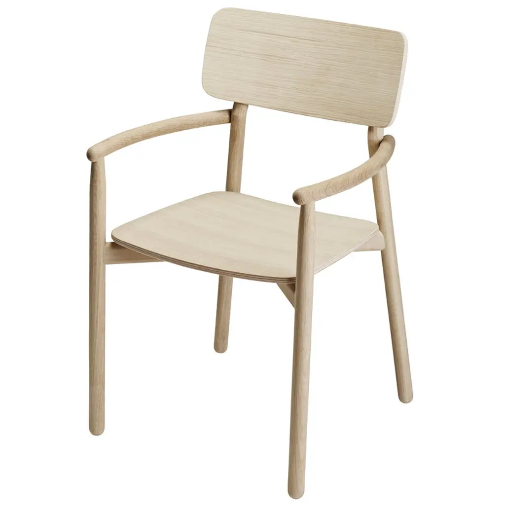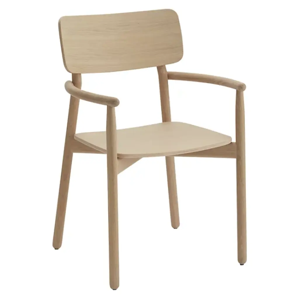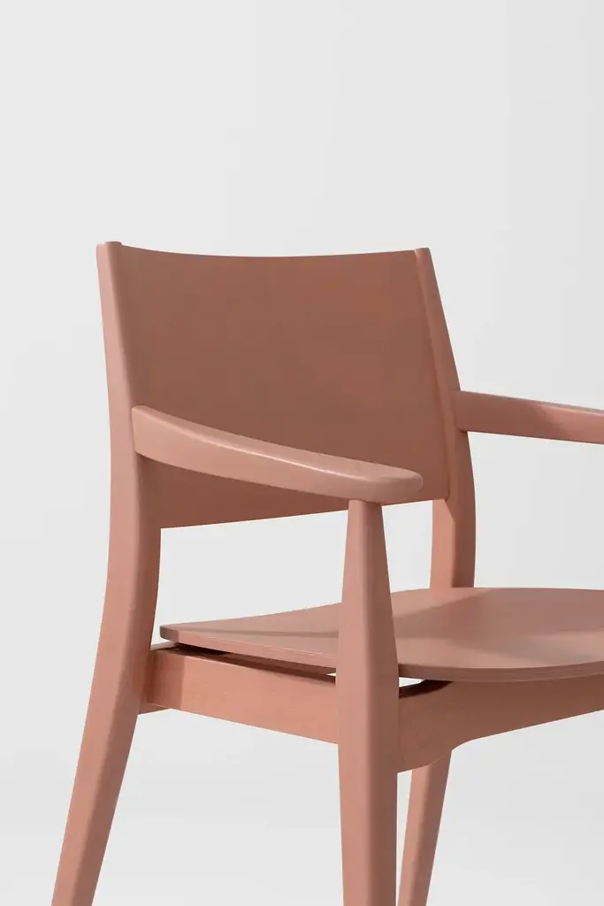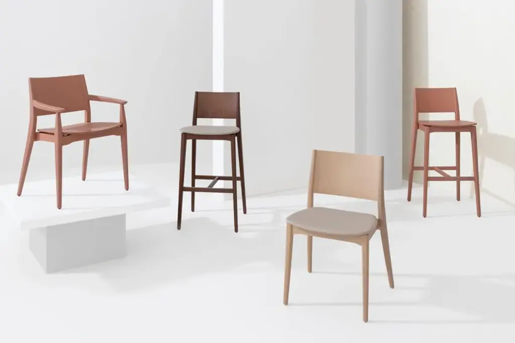 Blazer 630 is a solid, elegant armchair that suits any setting.Crafted from solid beech wood, it features a seat and backrest in plywood.Blazer is a collection with an aesthetic defined by its structural features.In the chairs and stools, the slightly recessed front stretcher, raised seat, and tapered legs convey a sense of lightness and elegance.The chair is also available with armrests for added comfort.Both the chair and the stool come in an upholstered version as well.