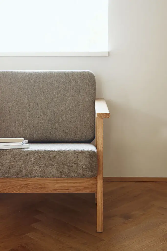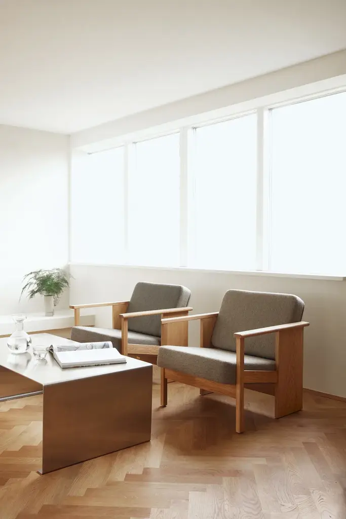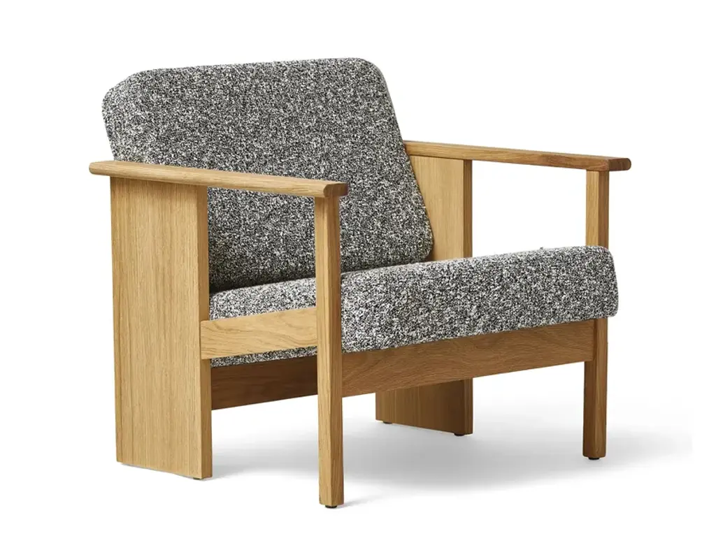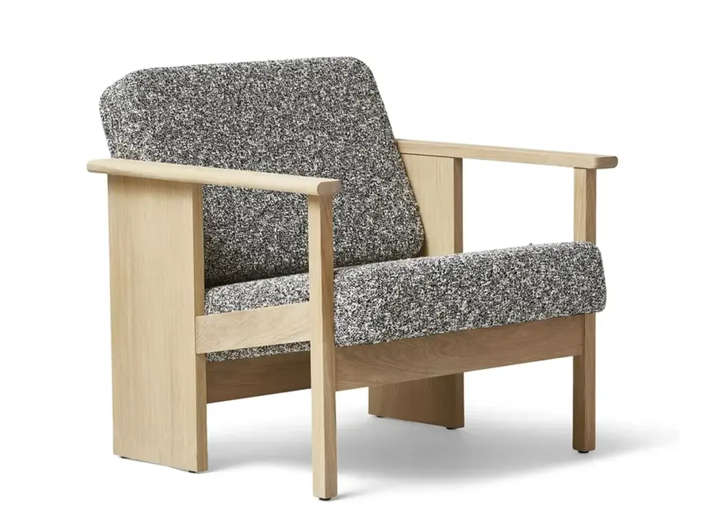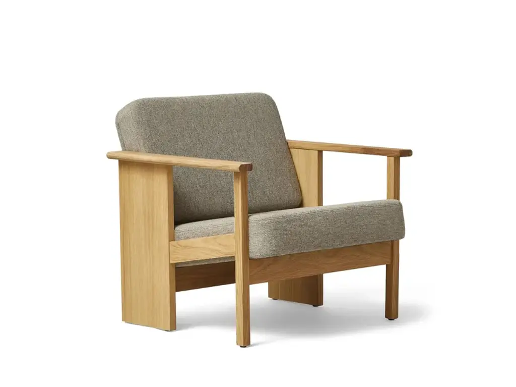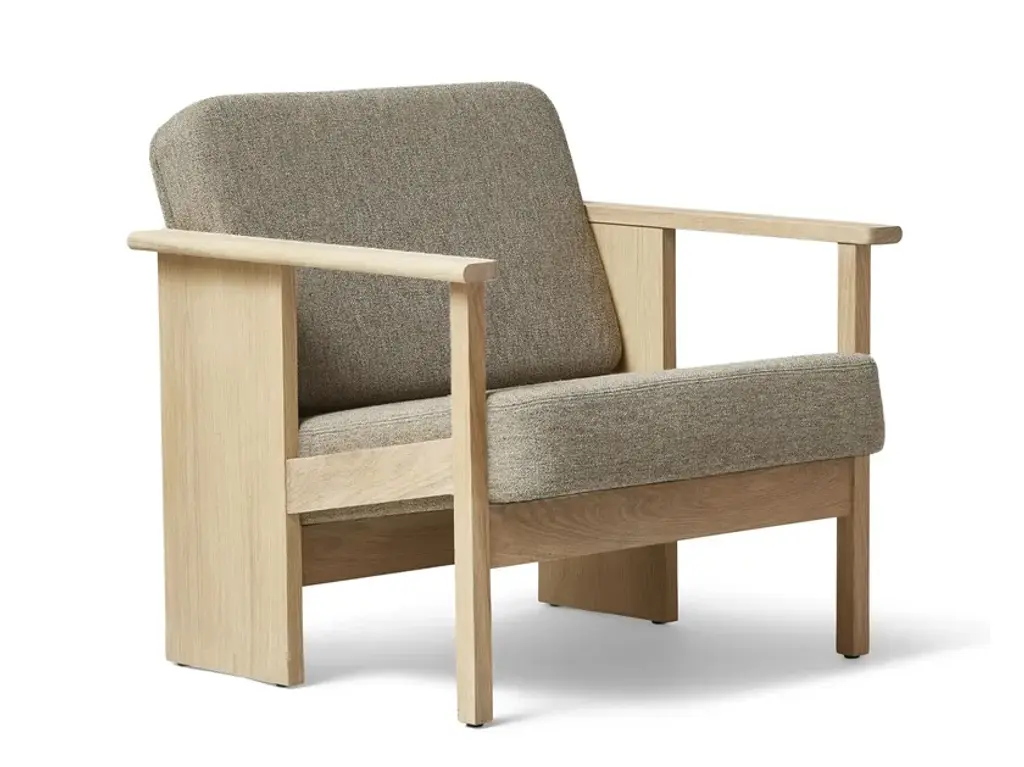 Block is a compact lounge chair with a distinctive wood panel and a laid back upholstered linen canvas overlay that combines enduring pure raw materials and soft ergonomic shapes. The chair is intended as a versatile piece of furniture that provides generous comfort despite its minimal footprint. The fine linen canvas features detailed knitting and stitching visible on both the back and front of the seat. The Block Lounge Chair is perfect for small spaces as well as large open areas with repetitive outlines. Form & Refine and Herman Studio created the Block Lounge Chair together for the Cabinetmakers' Autumn Exhibition 2022 in Copenhagen."We wanted to make a small, compact chair with a distinctive expression. The sturdy rear legs play an important role for the chair’s expression, construction and dimensions. During the development phase, We had an intensive focus on integrating as much comfort as possible into a relatively small chair." Herman Studio