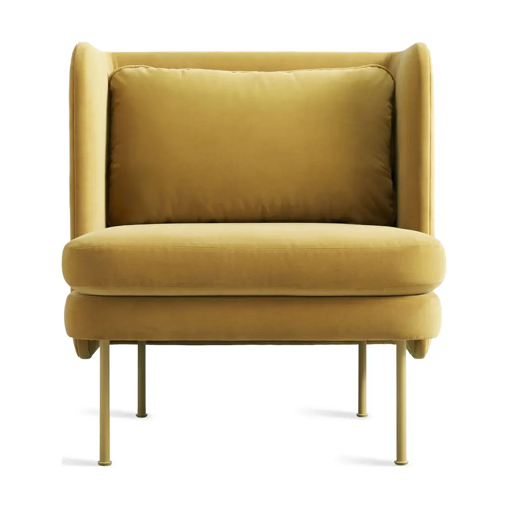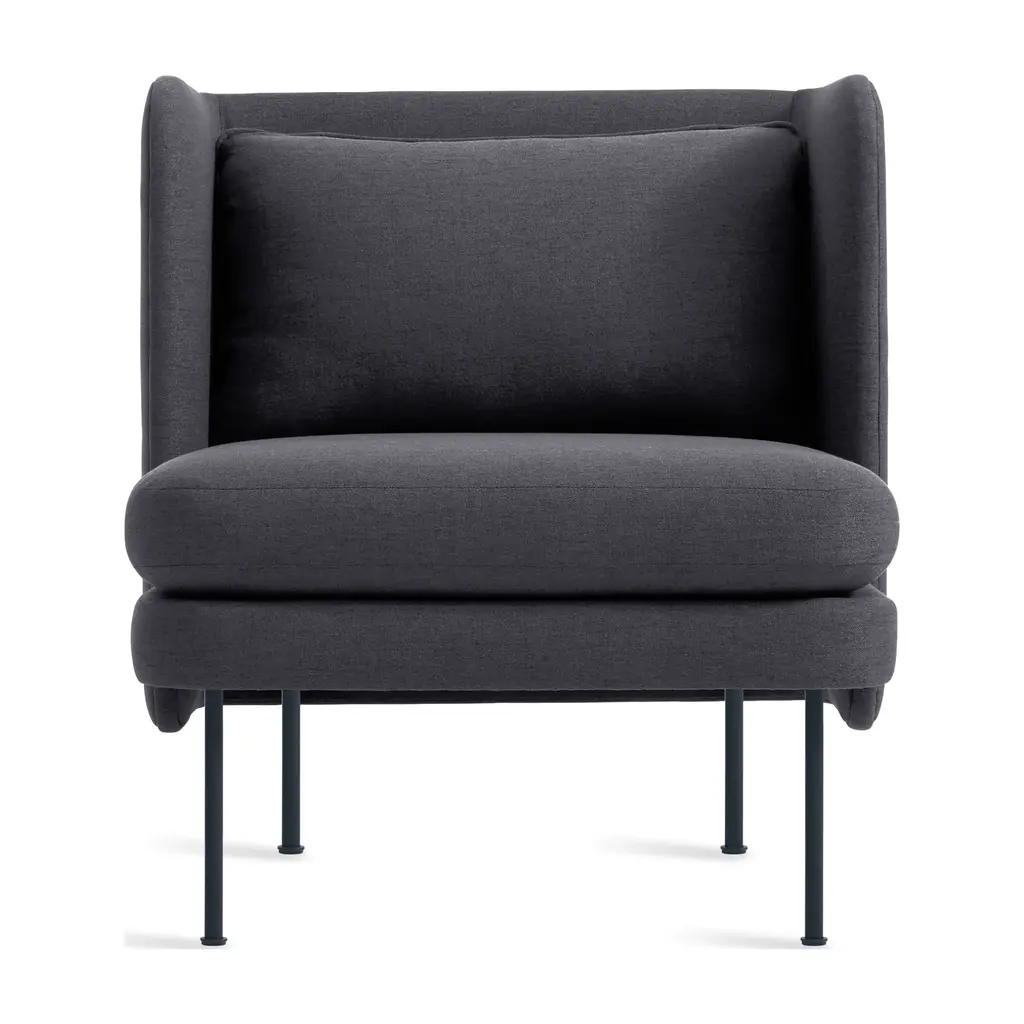 The elegant Bloke Lounge Chair from Blu Dot is a timeless addition to any living space. Its kiln dried hard wood frame, powder coated steel legs, and sophisticated silhouette deliver a luxurious look and feel. The high back and loose cushioning provide comfort and style, while the tailored fabrics add a subtle hint of glamour to any interior scheme. Highlights