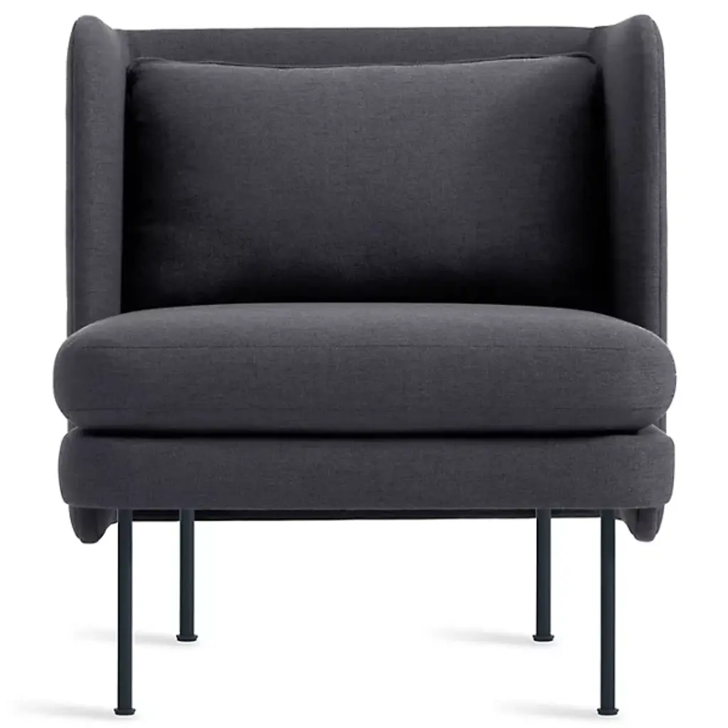 Fit for the Queen or keggers. The Bloke Lounge Chair from Blu Dot is a minimalist piece that will blend seamlessly in a formal sitting room and casual lounge area alike. The legs are thin and round but unwaveringly sturdy, and the high back envelopes a loose seat and back cushion for refined comfort. This chair may be sophisticated, but it knows how to have fun.