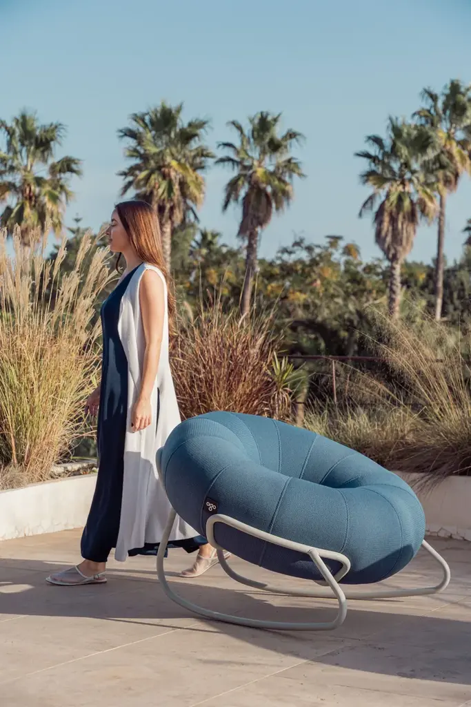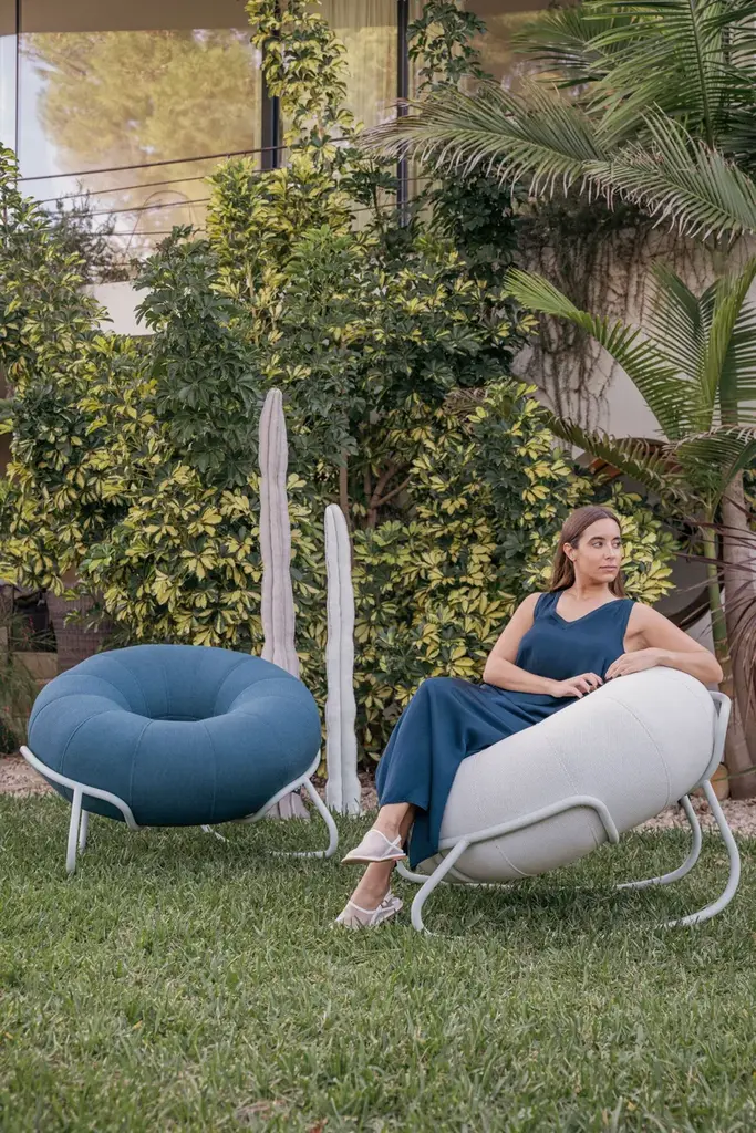 Bloom Base is an iron support for armchairs.The perfect complement to elevate your Don Out L to a new dimension of style and comfort. With a fresh design inspired by the delicacy of flowers, OGO Furniture presents the Bloom Base, designed by Adán D. Modesto: a comfortable and versatile rocking chair that transforms your space, adding a unique touch of creativity and distinction.Rock with our Bloom Base and lift your Don Out!(Don Out L not included)There are two things that characterise the Don Out series: the most original of designs, and great flexibility. During the day or the night, in & out… Use it in any surrounding you want to adapt your needs. They are products that have been designed for you to play around with. Use the sofa as an attractive and modern seat or separate the pieces and create different puffs in one or many colours, which will give your space that touch of originality and colour that it needs. This collection will not go unnoticed, both because of its practicality and the fun aspect it will give to your garden, living room or wherever you like.Tentative measurements can vary up to a few centimetres depending on the fabric used.