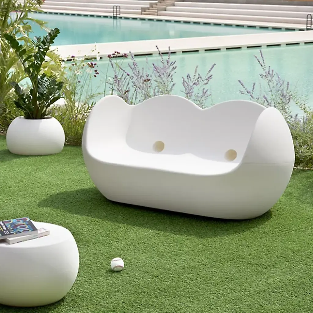 The Blossy Lounge Chair is a contemporary luxury furnishing designed by Karim Rashid for Slide. Made in Italy, this mid-mod influenced style can be seen in the minimal yet modern silhouette. It features a polyethylene build with lacquered finish, and it’s suitable for use in all environments. Made in Italy, the playful styling of this all-weather chair helps elevate the look and feel of entertaining and lounge areas. Suitable for display solo or can be arranged with other members of the Blossy family.