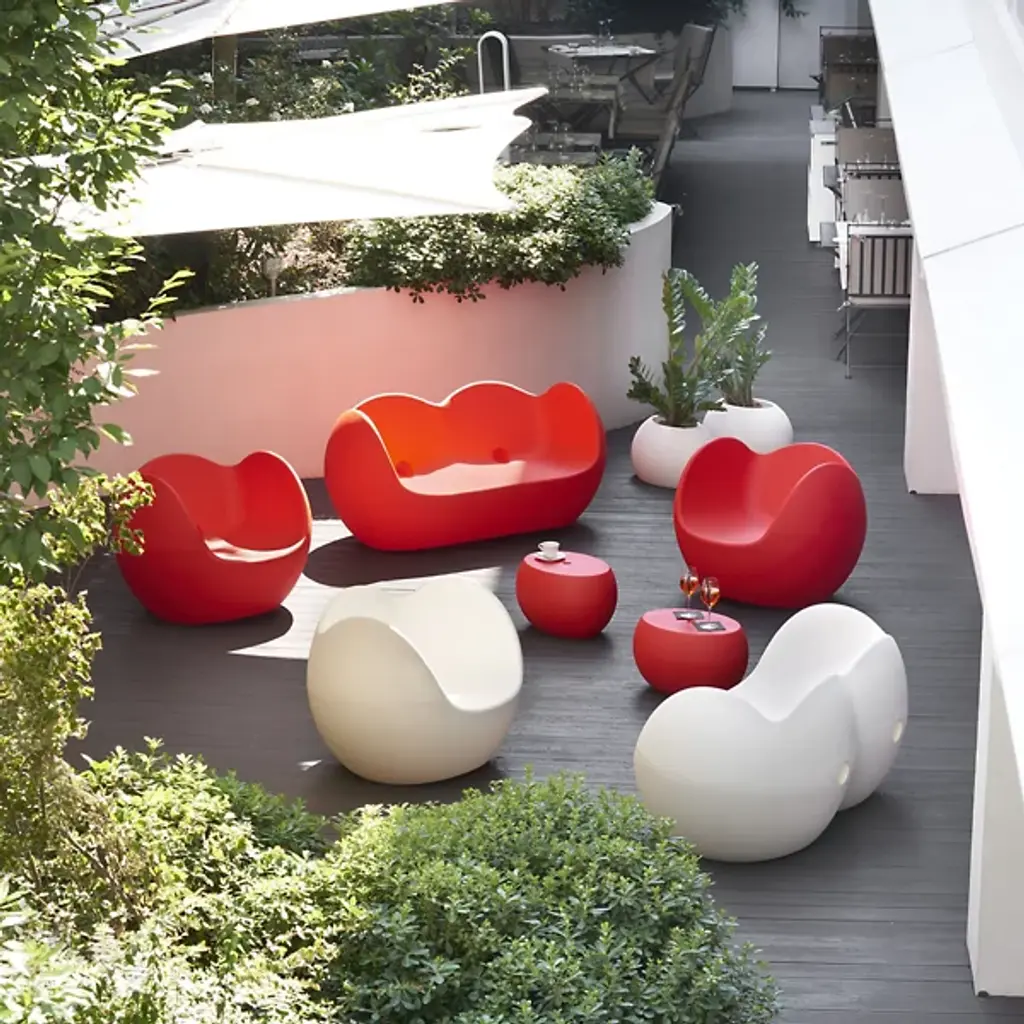 The Blossy Lounge Chair is a contemporary luxury furnishing designed by Karim Rashid for Slide. Made in Italy, this mid-mod influenced style can be seen in the minimal yet modern silhouette. It features a polyethylene build with lacquered finish, and it’s suitable for use in all environments. Made in Italy, the playful styling of this all-weather chair helps elevate the look and feel of entertaining and lounge areas. Suitable for display solo or can be arranged with other members of the Blossy family.