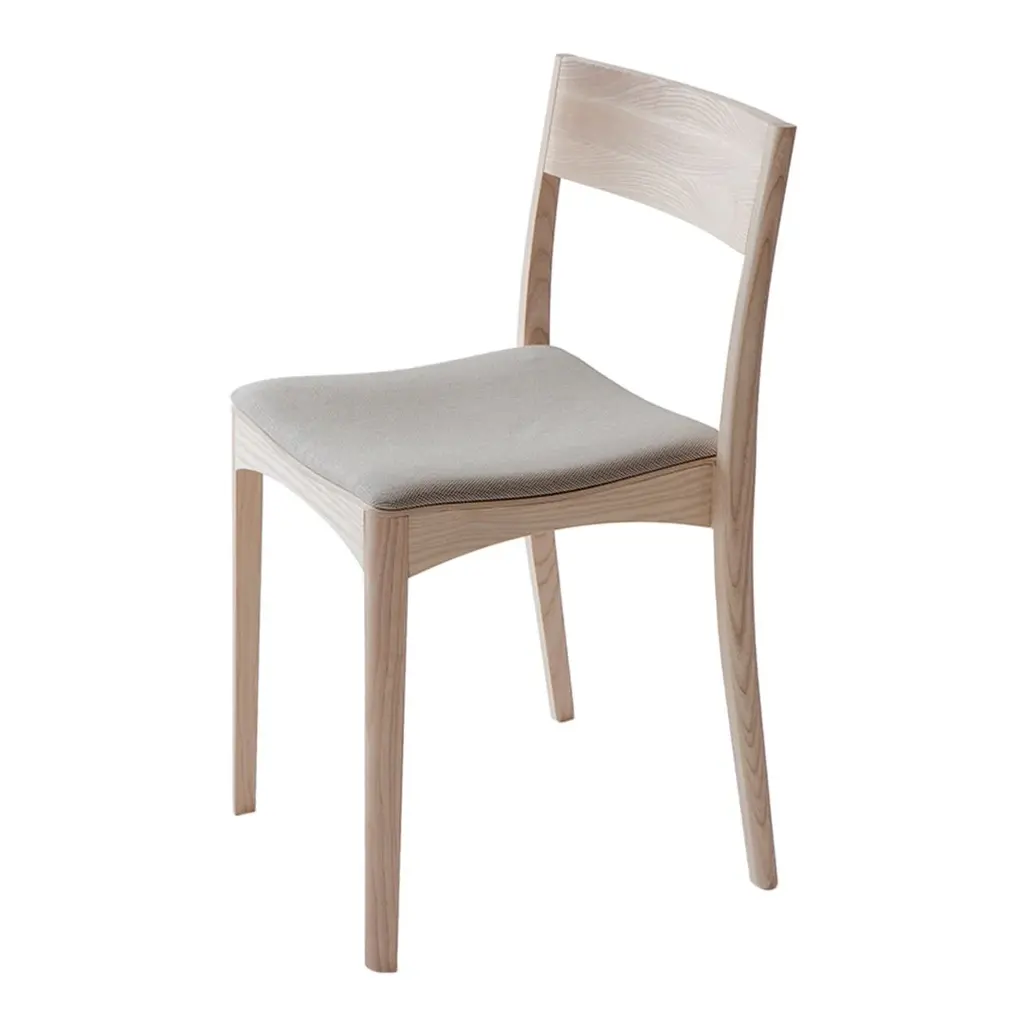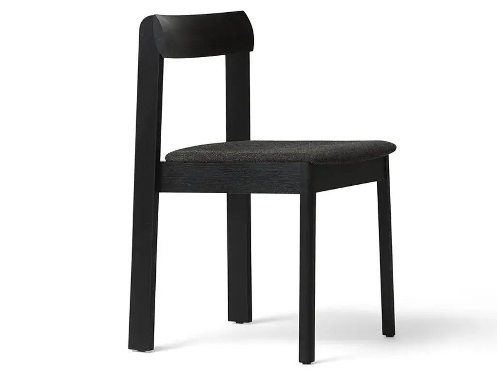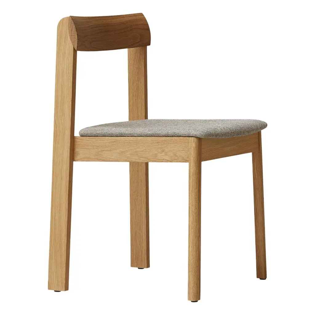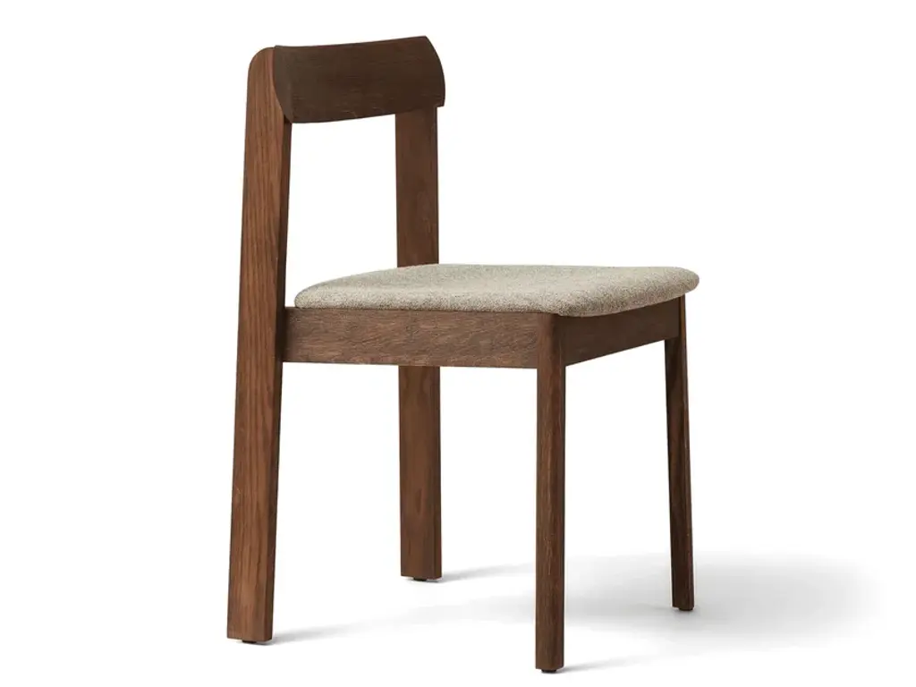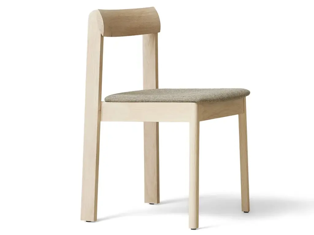 This is an archetypal chair created by Form & Refine. The unusual seat shape, which was inspired by human anatomy, promotes good posture and provides excellent seating comfort. The organically shaped solid backrest gives the chair a minimalist and personal style. The combination of strong, solid legs and the Hallingdal upholstery lends the chair a surprisingly light and stunningly sharp visual appearance. The exquisite backrest is steam-bent and made from a single solid piece of wood.The upholstered seat cushion is snugly fitted to the frame with softly rounded edge. The chair is upholstered with the classic woolen textile Hallingdal 65 in an updated colour scale and a traditional pattern. The textile is a blend consisting of 70% new wool and 30% viscose.The wool provides exceptional durability and flexibility, whilst the viscose lends brilliance and depth to the colour. Both materials are dyed before they are spun, which highlights the rich texture of the fabric. The textile, Hallingdal 65, 0227, was developed in partnership with Kvadrat."With this chair we searched to balance something refined and robust at the same time. We aimed for a chair with distinct character and gave it elongated back legs that smoothly grip the curved backrest. It should also be stackable, comfortable and fit into any environment." Herman Studio