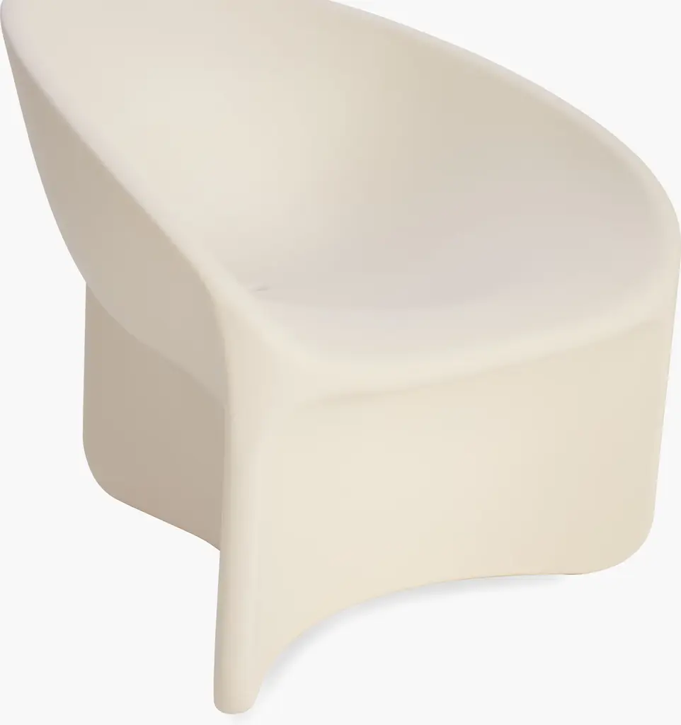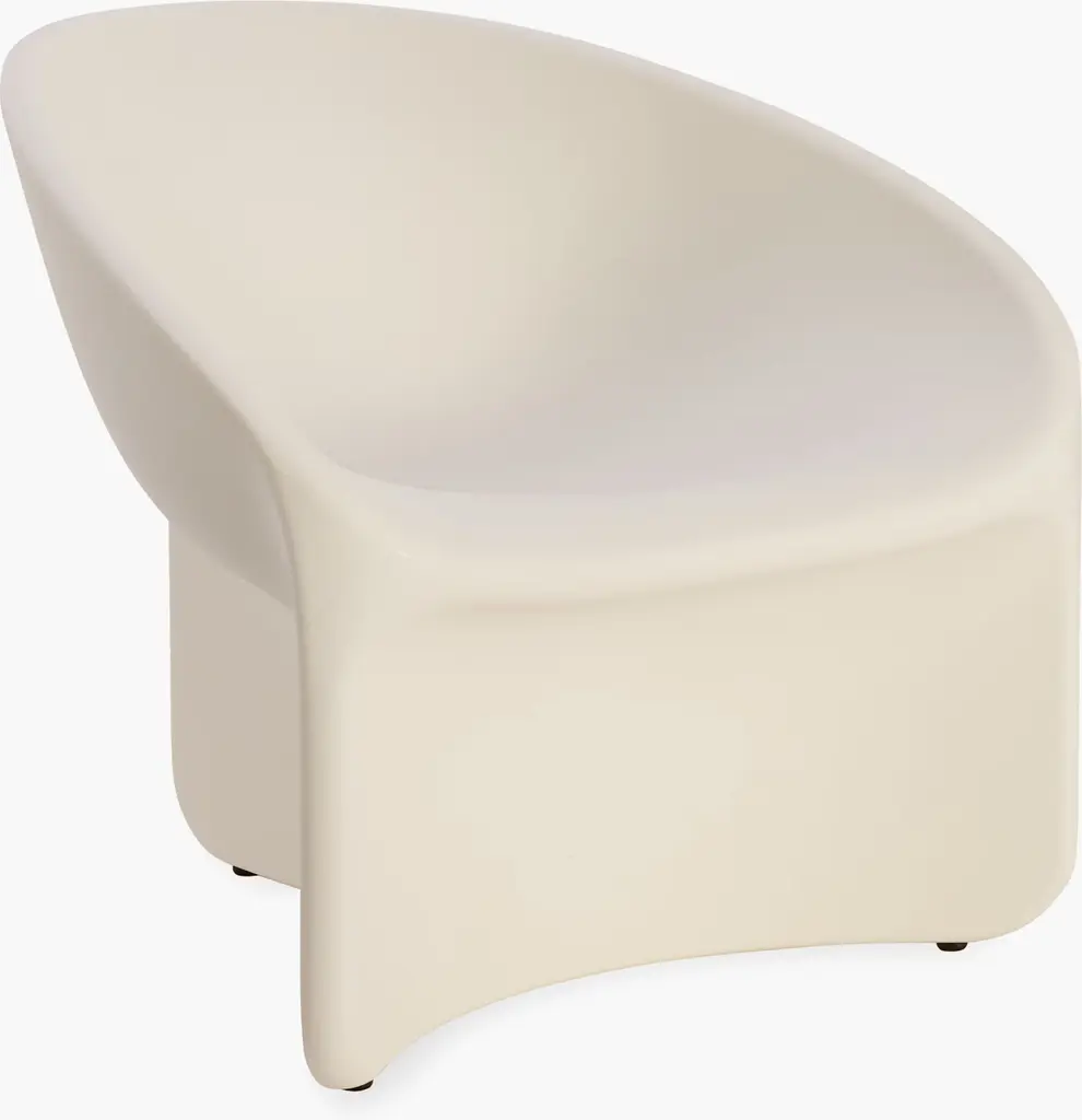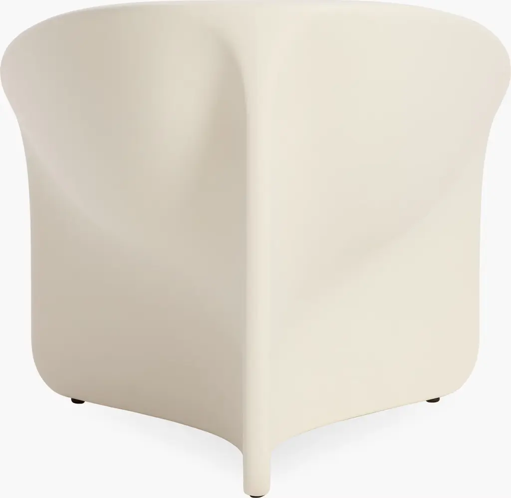 The sheltering form of the indoor-outdoor Bluff Chair (2023) by Hlynur Atlason was inspired by the smooth shapes carved into nature by the sea. Exclusive to DWR, this sculptural chair features a surprisingly comfortable scooped seat that cradles the body. “By working carefully with angles and proportions, we're able to create an experience where you're no longer aware of the chair when you're seated," says the Icelandic-born designer. Bluff is made from a high percentage of recycled post-consumer plastic (the percentage varies by color) and is 100% recyclable. Its warm tones are designed to harmonize with the natural environment and its seat has drainage to minimize pooling. Made in U.S.A.