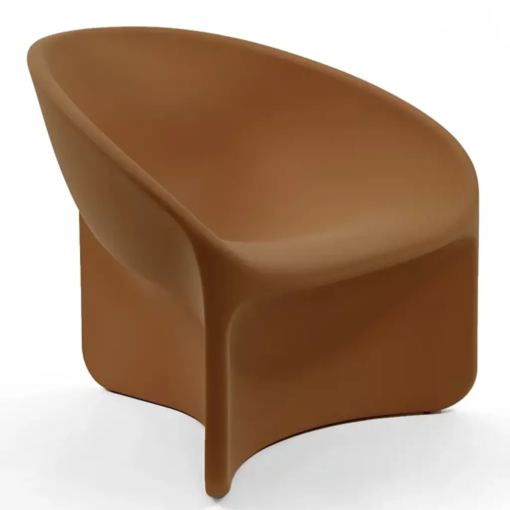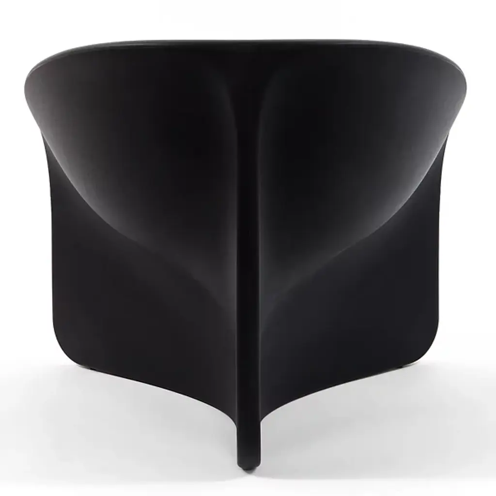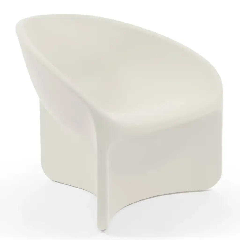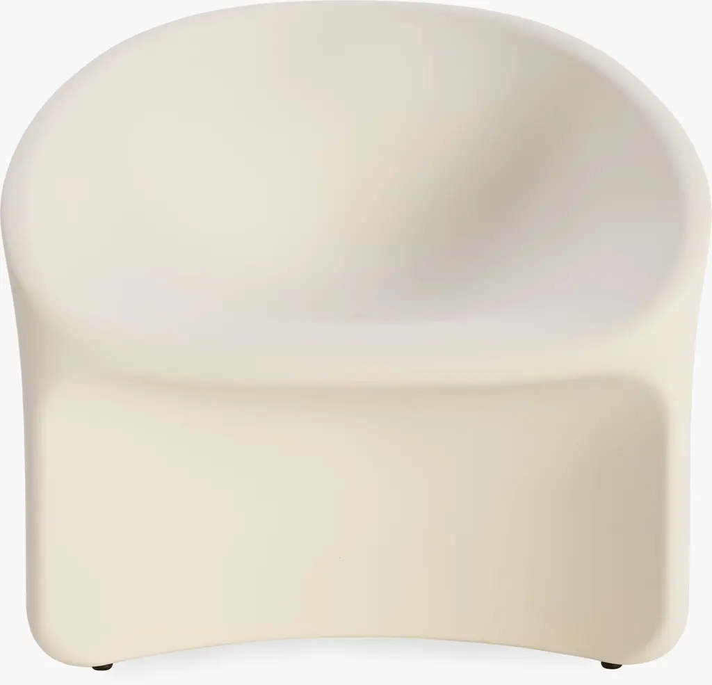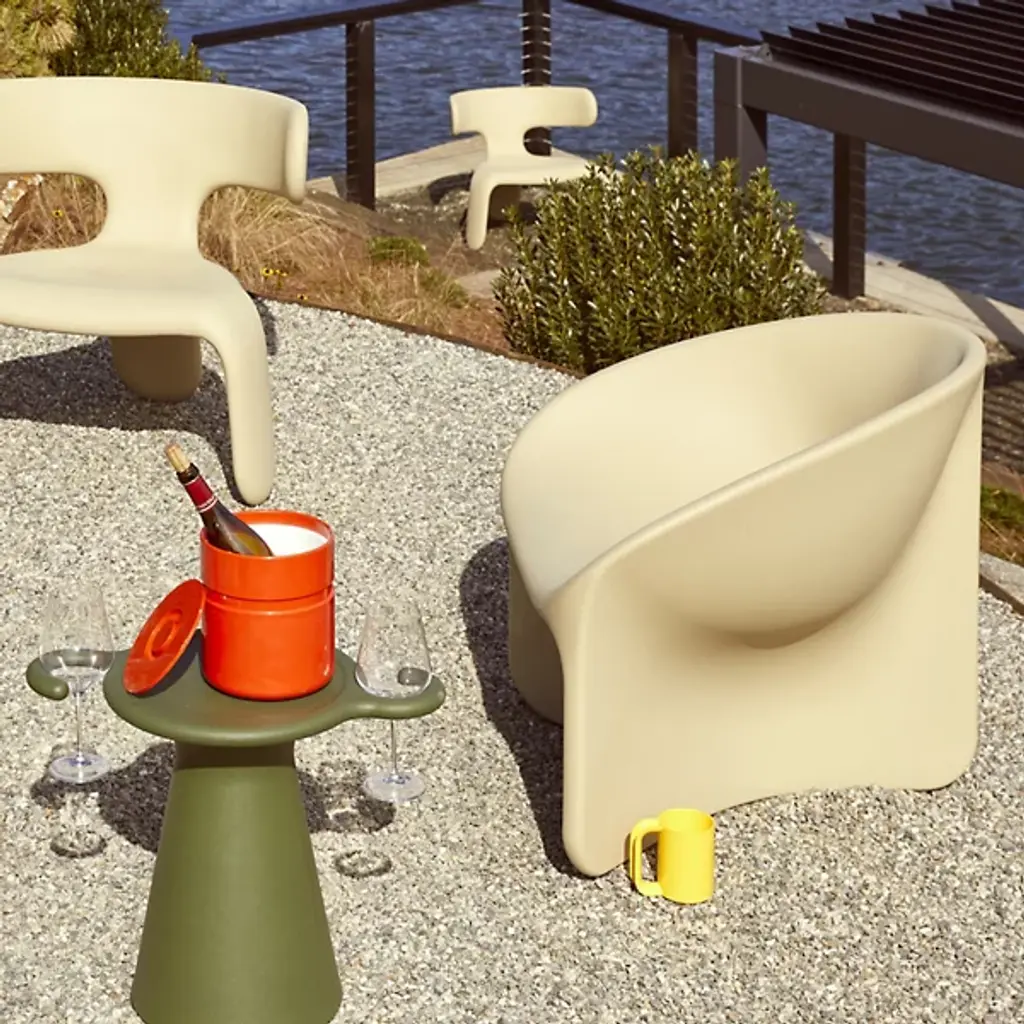 The Bluff Lounge Chair from Heller features an organic and modern design with a comfortable form. The scooped-out design of the seat was inspired by coastal rock formations, where the sea has carved shapes into the rocks. Designer Hlynur Atlason sought to create a chair you'd "no longer [be] aware of when you're seated." The seat also has a drainage hole to prevent pooling, enabling outdoor use. This lounge chair is made in the USA from a high percentage of recycled polyethylene and is 100% recyclable, making it eco-friendly.