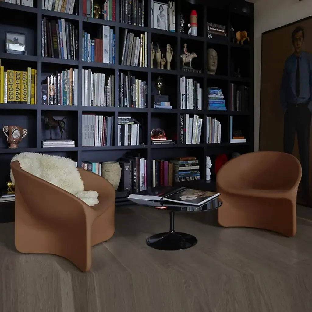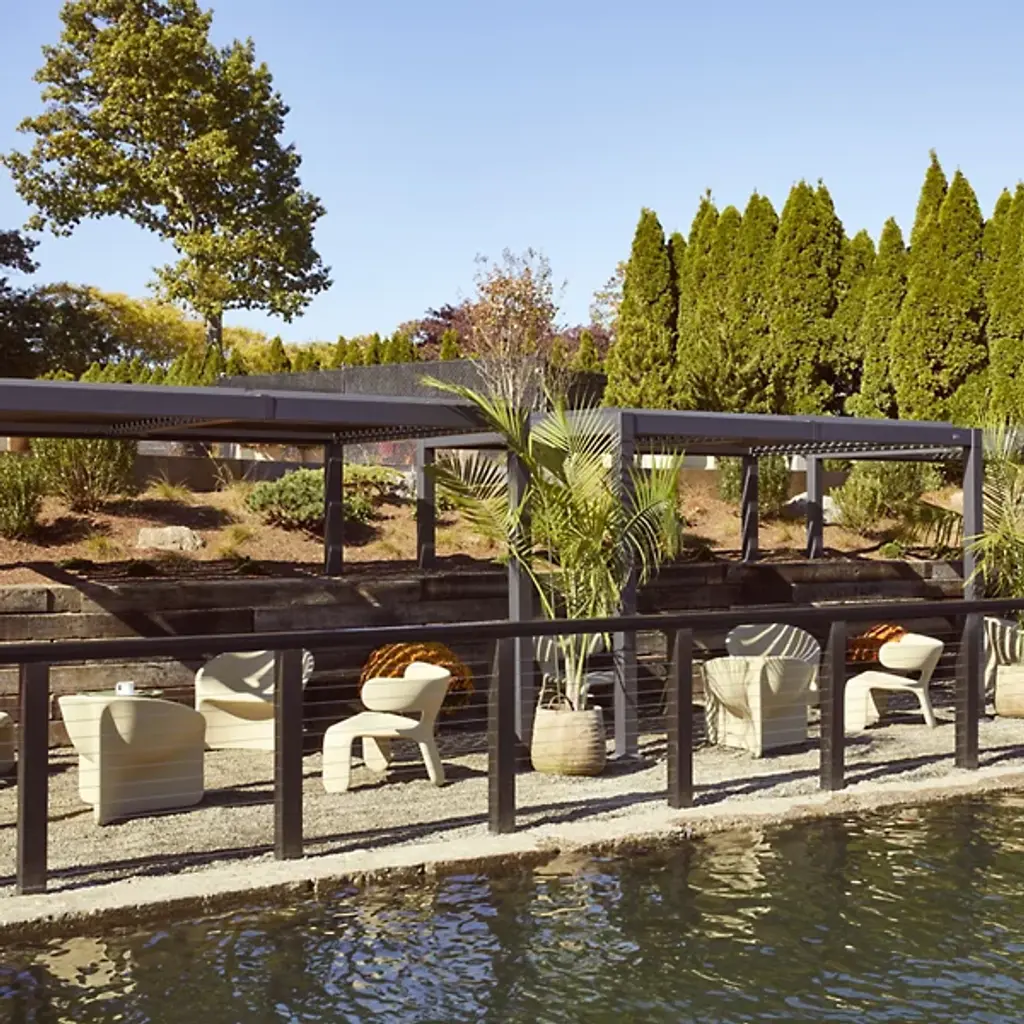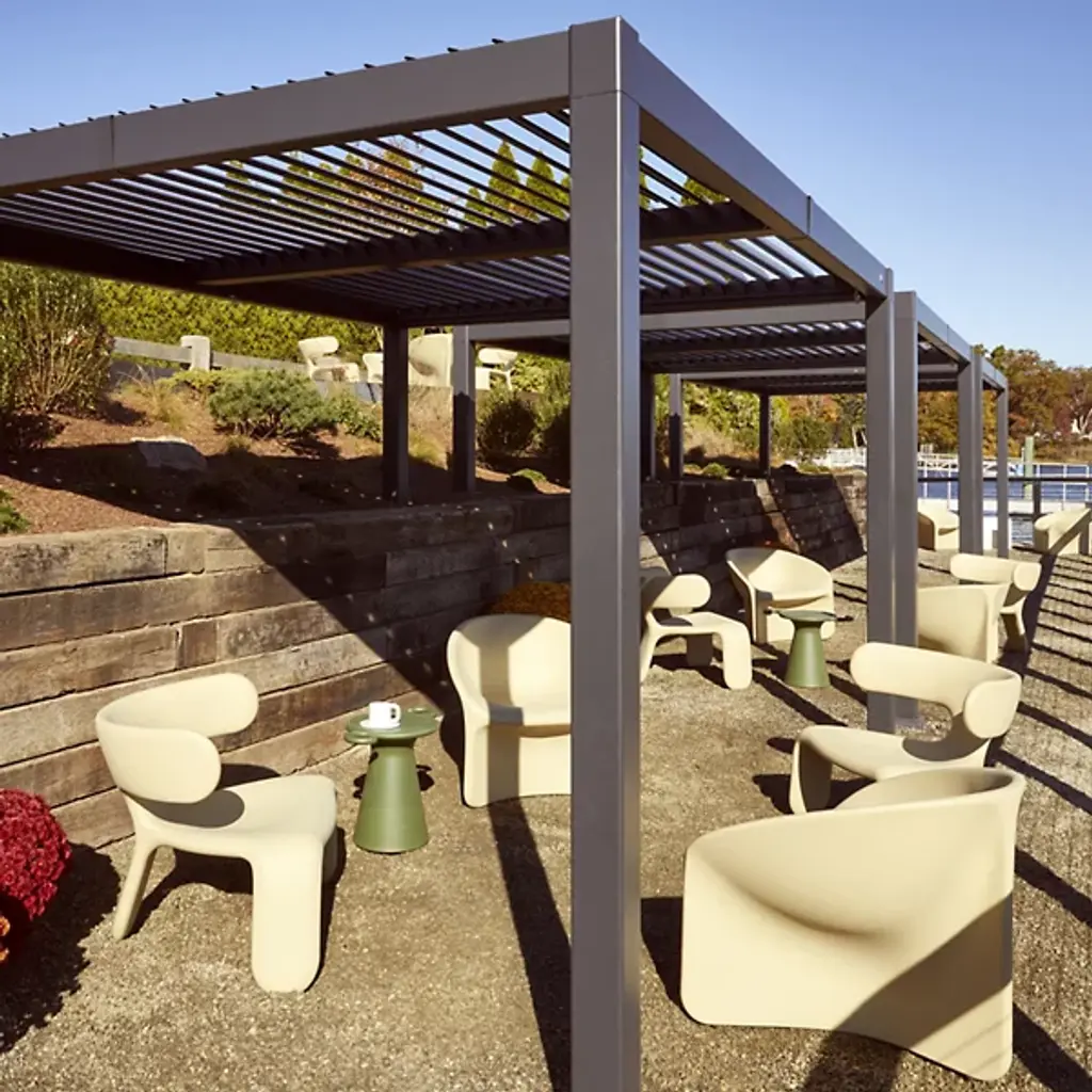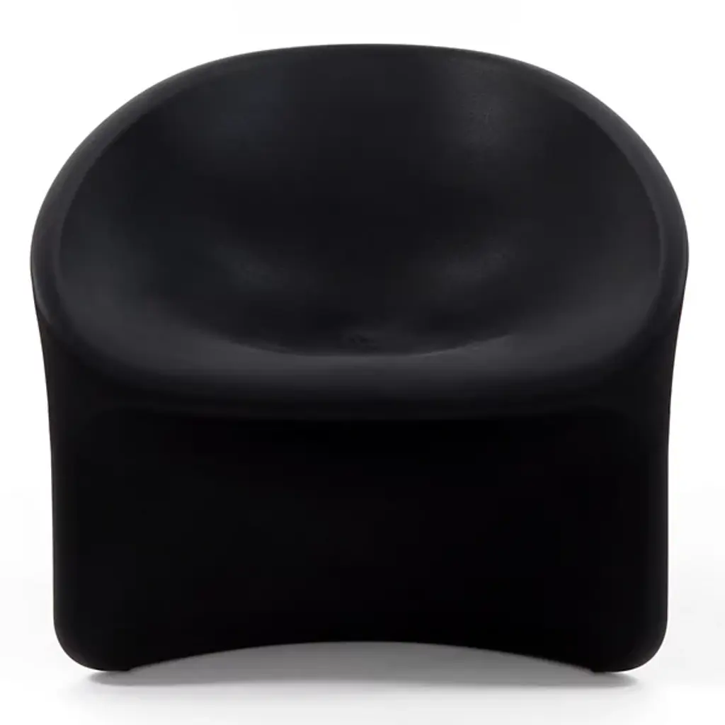 The Bluff Lounge Chair from Heller features an organic and modern design with a comfortable form. The scooped-out design of the seat was inspired by coastal rock formations, where the sea has carved shapes into the rocks. Designer Hlynur Atlason sought to create a chair you'd "no longer [be] aware of when you're seated." The seat also has a drainage hole to prevent pooling, enabling outdoor use. This lounge chair is made in the USA from a high percentage of recycled polyethylene and is 100% recyclable, making it eco-friendly.