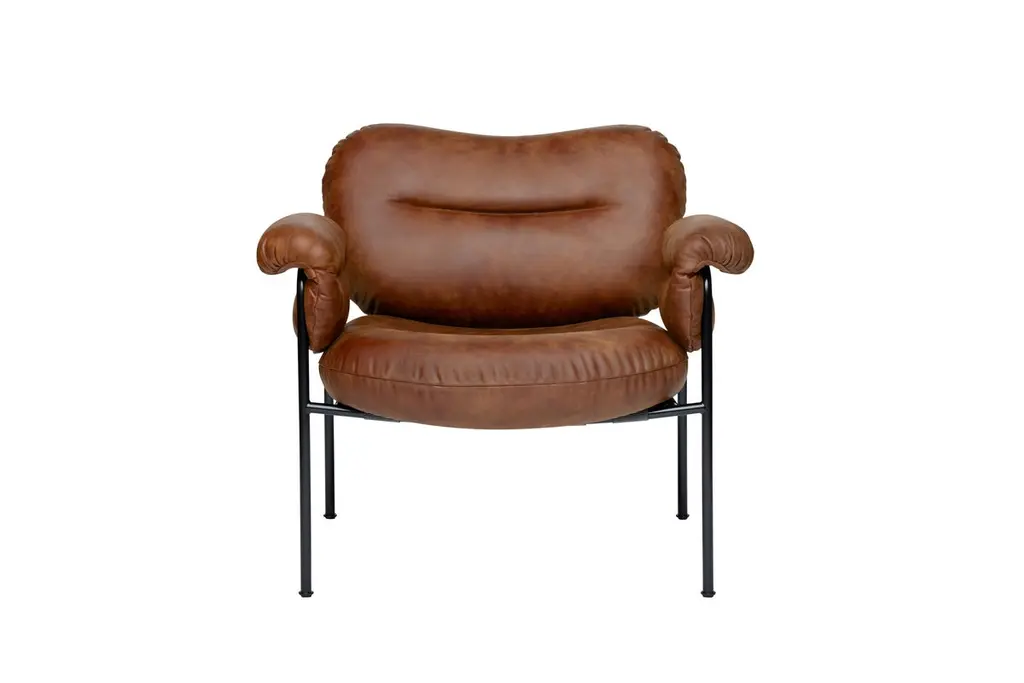 Bollo Armchair By Fogia, Brown Leather, Black Steel