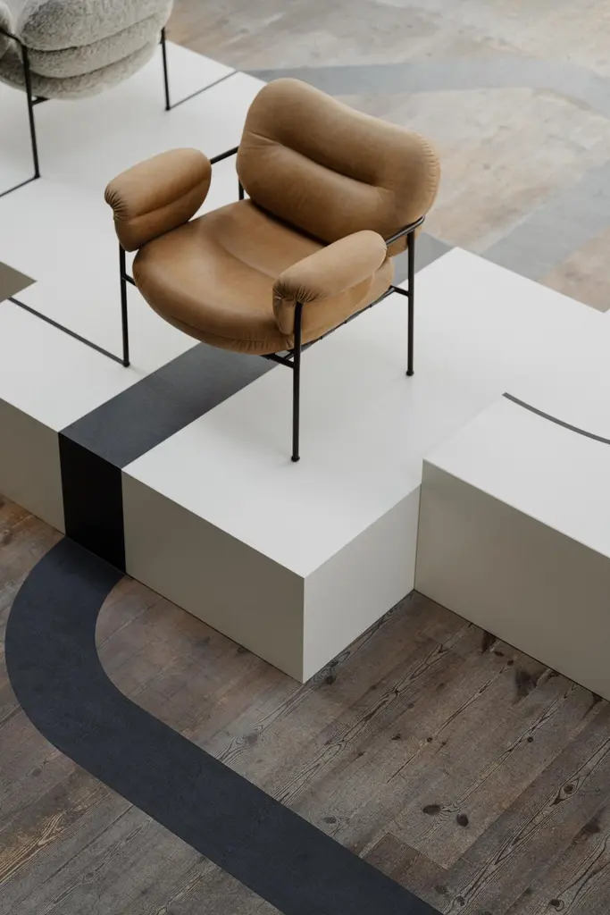 Bollo Armchair by Andreas Engesvik for FOGIAModel shown on main images: Black steel legs + Leather: Dark BrownWidth: 81cm /32inDepth: 81cm /32inHeight: 71cm /28inSeat Height: 42.5cm /17inSeat Depth: 54cm / 21inThe iconic Bollo combines deep comfort with clean lines. Inspired by the distinct tubular frames of mid-century lounge chairs, its generous cushioning wraps and softens the metal frame. Bollo is a result of cleverly blending of comfort and economic use of material. Its spacious proportions mean it is a seat you can get properly comfortable in; prefer to tuck your feet under yourself for cosy positioning? There is plenty of space for that. --Fogia is an award-winning Swedish design company and furniture producer, collaborating with some of the most progressive contemporary designers working today. With roots in the Scandinavian design aesthetic, Fogia’s forever pieces are handmade in our own factory to stringent standards of quality and construction, using high-end materials and craftsmanship. Graceful elegance and purposeful function are realised through a genuine knowledge of craft and construction, whether it’s pieces for the home or public spaces.