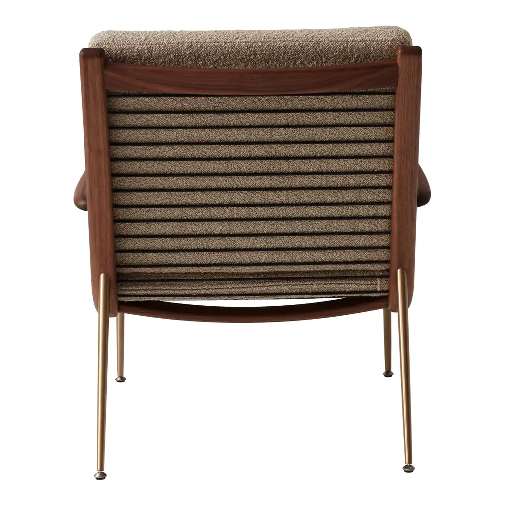 Debuted in 1956, the Boomerang's exacting design continues to delight today. This mid-century classic lounge chair by duo Hvidt & Molgaard has a no-frills form. From a hand-polished wooden frame that echoes the pleasing L-shaped symmetry of its Australian namesake, to the slender brass legs that splay out an angle, the Boomerang endures as a masterpiece. While Hvidt & Molgaard stripped the frame of any superfluous detail, they also employed their superior technical skills to maximize comfort. Its appearance is contemporary, but the Boomerang prioritizes another principle of modern Danish design: that of function. The relaxed slant of the back ensures that one sits with ease, as does the option of a version with arm rests. Reversible pillows with removable covers add further support. "The Boomerang's appeal lies in its stark simplicity, but this streamlined form is deceptive," explains &Tradition CEO and founder Martin Kornbek Hansen. "This is a chair that was made to be enjoyed, with the inclusion of clever details that bolster the body." Renowned for their rigorous approach, Hvidt & Molgaard were pioneers in the shift towards industrialized furniture production. After founding the firm in 1944, the duo combined their understanding of traditional craftsmanship techniques with the desire to craft pieces that were easy to assemble and produce on a mass scale. Many decades after Hvidt & Molgaard first debuted the Boomerang, &Tradition is proud to resume its production in Denmark.
