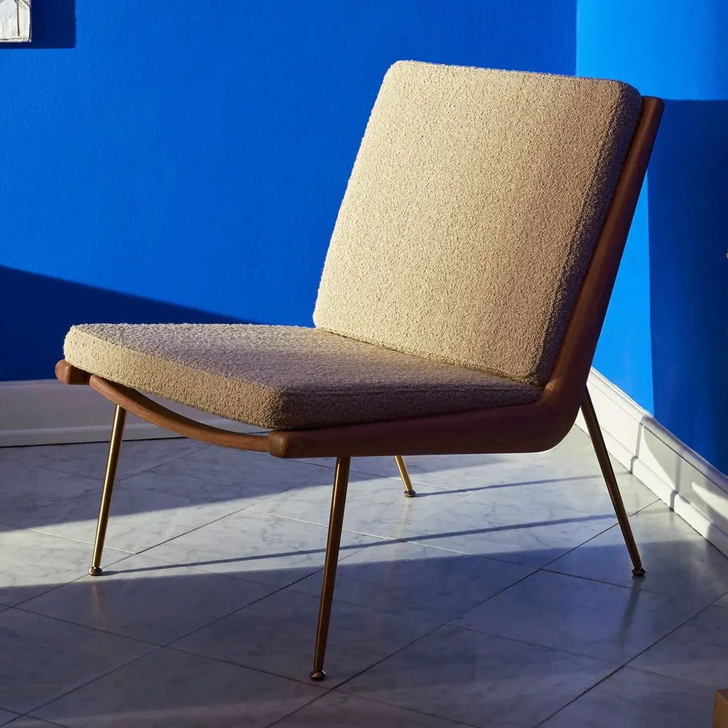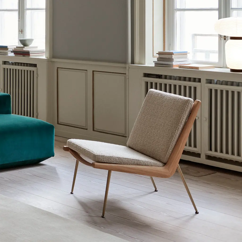 Introduce luxury into your home with the Boomerang Lounge Chair from &tradition. Created by the renowned designers Hvidt & Mølgaard in 1956, this chair boasts a sleek and minimalist design. Made with hand-polished wood and elegant brass or stainless steel legs, the Boomerang is a true masterpiece of Danish design. Highlights