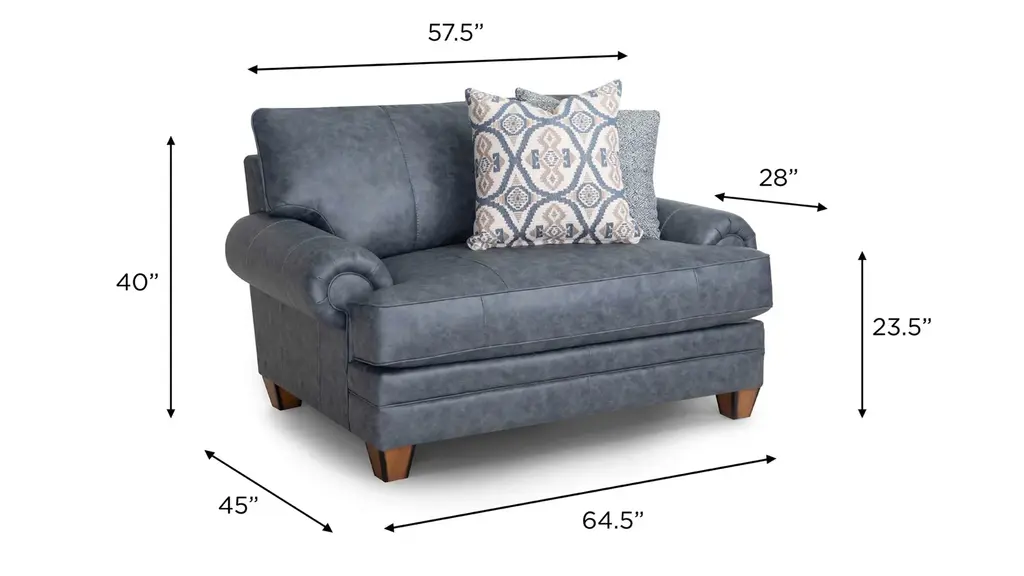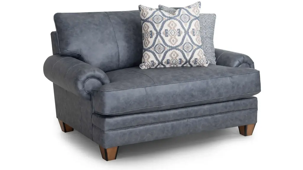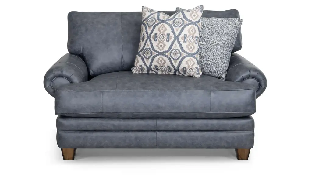 Transform your living room into a cozy, yet sophisticated retreat with the Boswell living room collection where traditional charm meets rustic allure. Crafted with distressed faux leather upholstery, Boswell chair and a half exudes timeless elegance while providing the durability and easy care of modern materials. The classic rolled arms, sturdy wooden legs, and deep cushions reflect an indulgent style, while earthy tones and subtle distressing add a casual touch that blends seamlessly with both traditional and contemporary interiors.