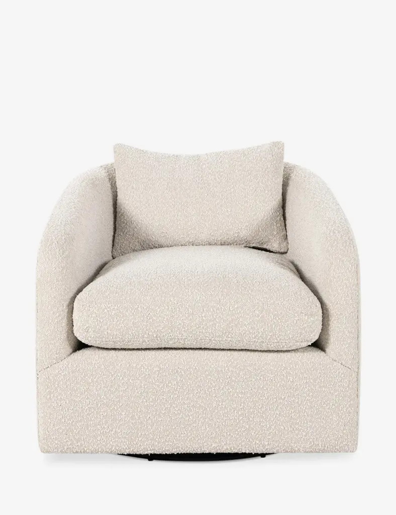 Melt into the luxurious comfort of Selma occasional chair by Liang & Eimil. Upholstered in soft boucle, this piece has been filled with plush foam for ultimate coziness. Selma features curved backrest that feels like an embrace while also providing an elegant look to the design.