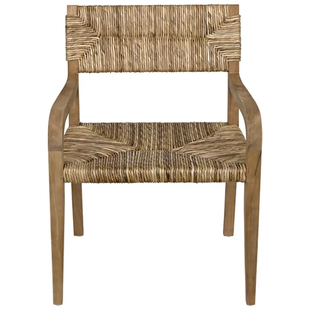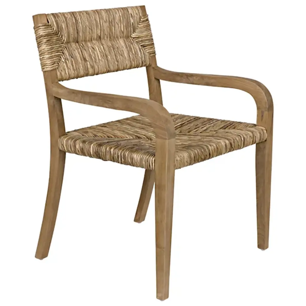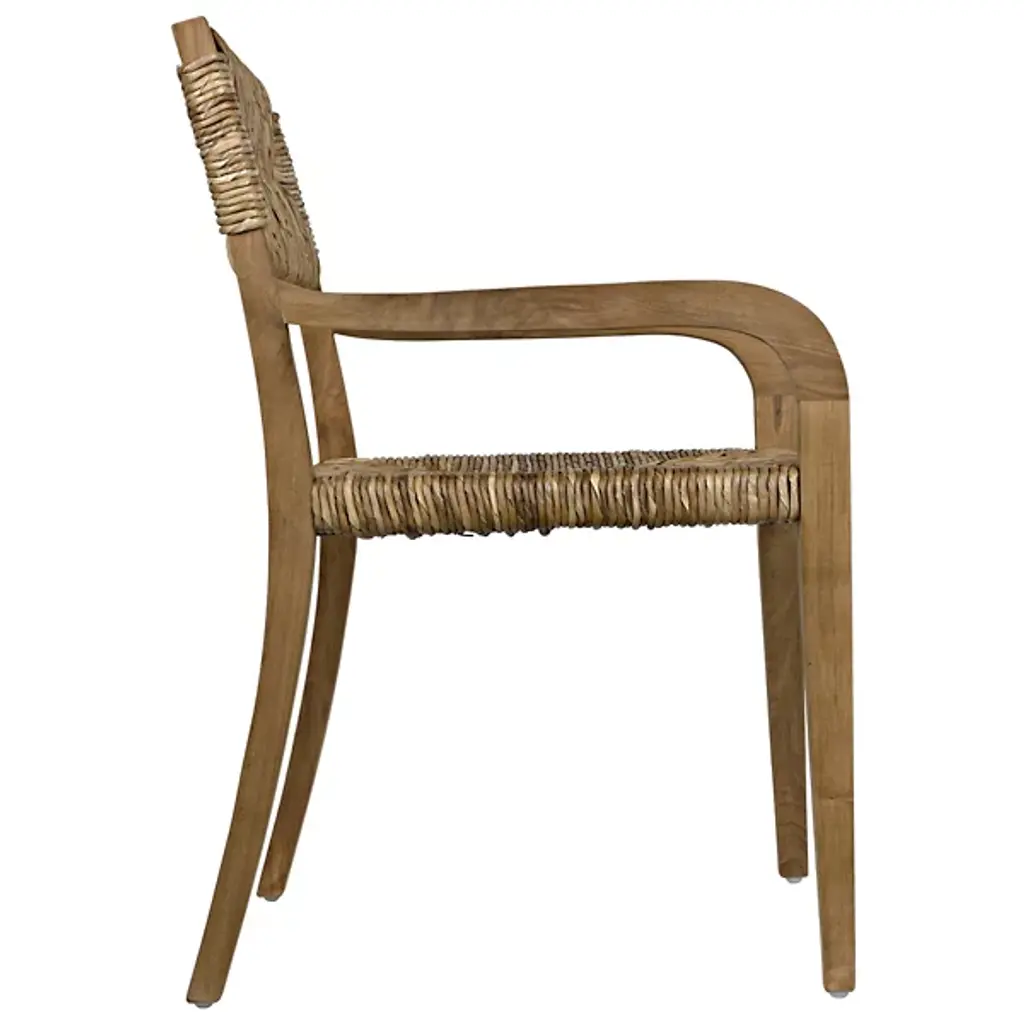 Expertly woven rush seating completes the gracefully curved Bowie Arm chair from Noir. This mid-century modern seat is made from teak and finely finished, its luster accentuated by the absence of ornament, effortlessly elevating decor through its comfortably refined form. Handcrafted without metal joinery, this is globally inspired furniture created for enduring elegance, the woven seat and back providing both textural contrast and a timeless silhouette to provide an uplifting twist on traditional living room seating.