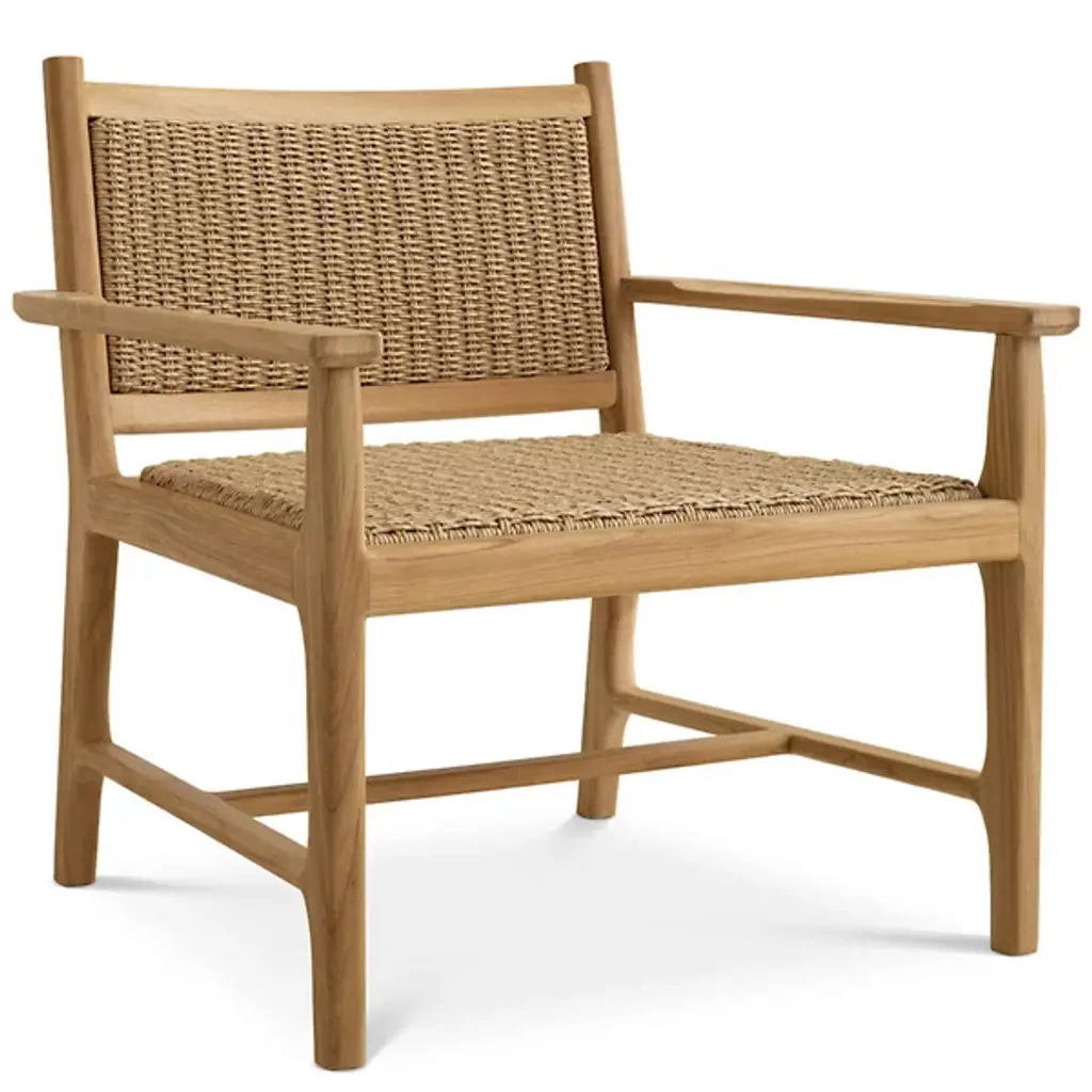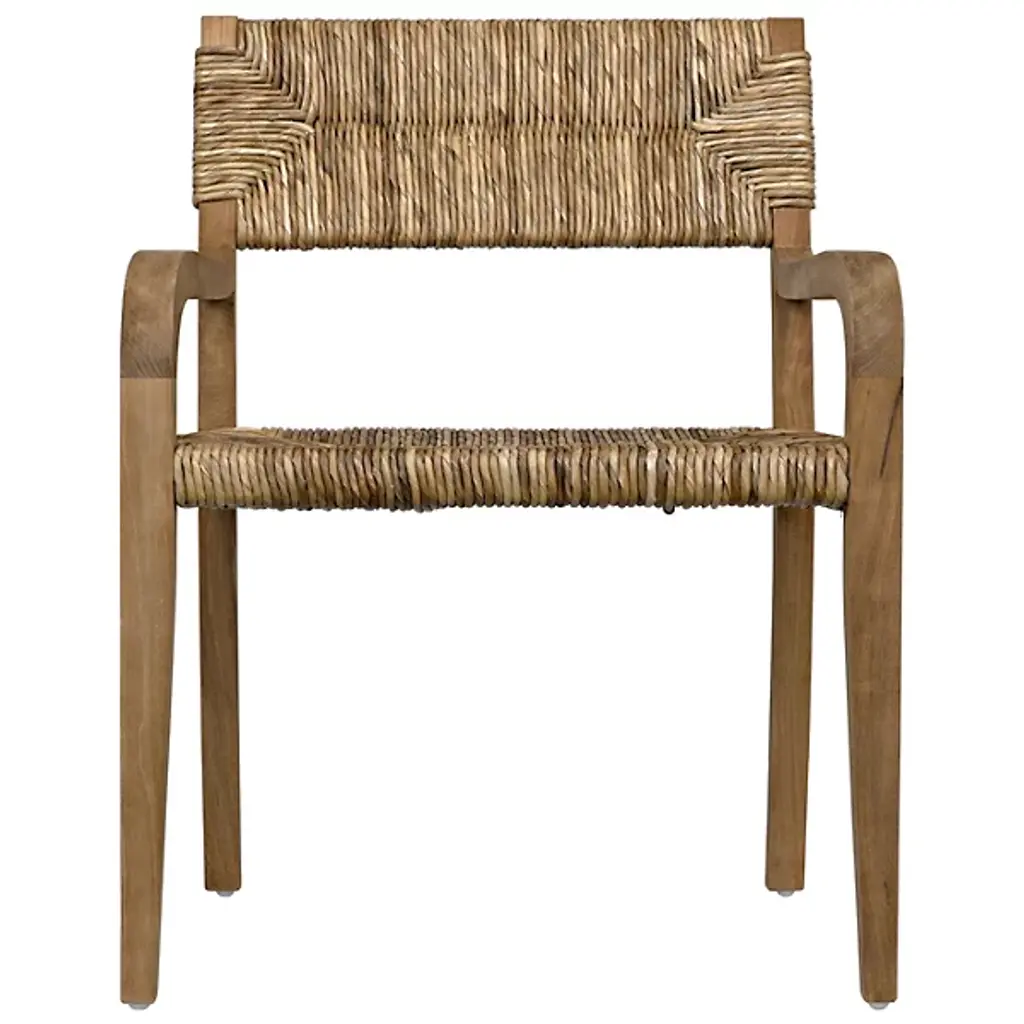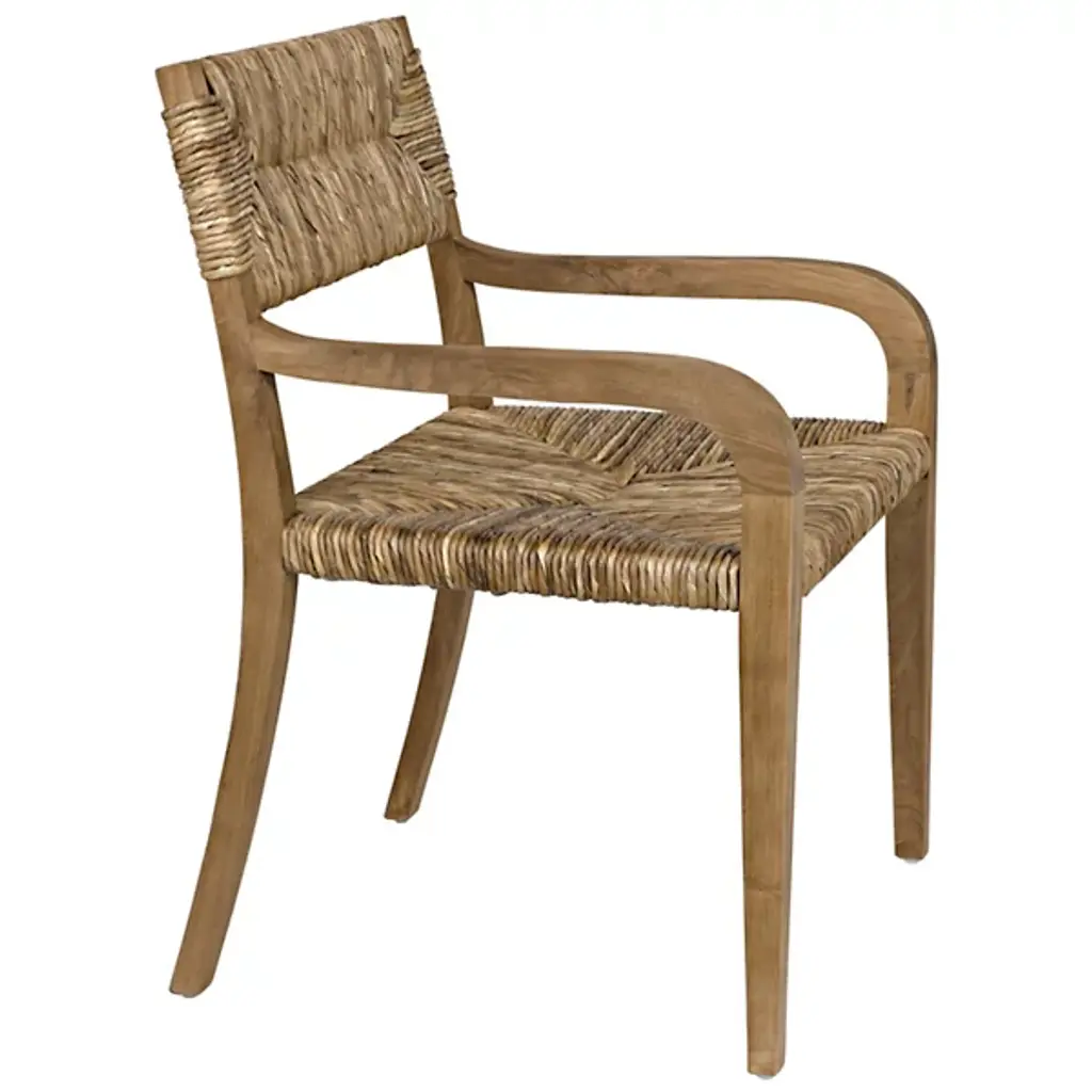 Expertly woven rush seating completes the gracefully curved Bowie Arm chair from Noir. This mid-century modern seat is made from teak and finely finished, its luster accentuated by the absence of ornament, effortlessly elevating decor through its comfortably refined form. Handcrafted without metal joinery, this is globally inspired furniture created for enduring elegance, the woven seat and back providing both textural contrast and a timeless silhouette to provide an uplifting twist on traditional living room seating.