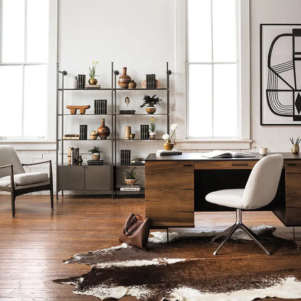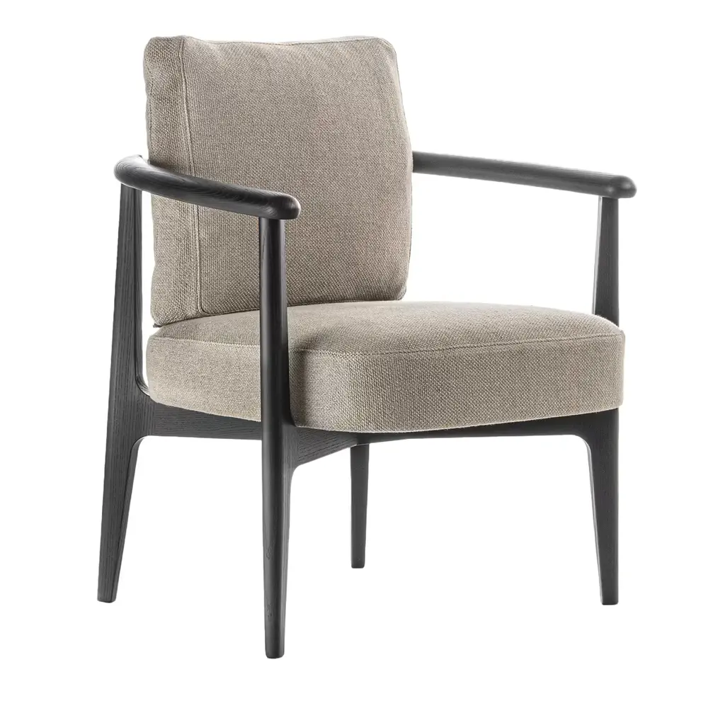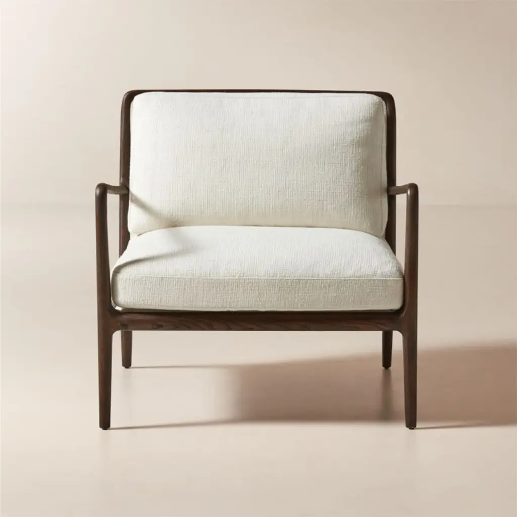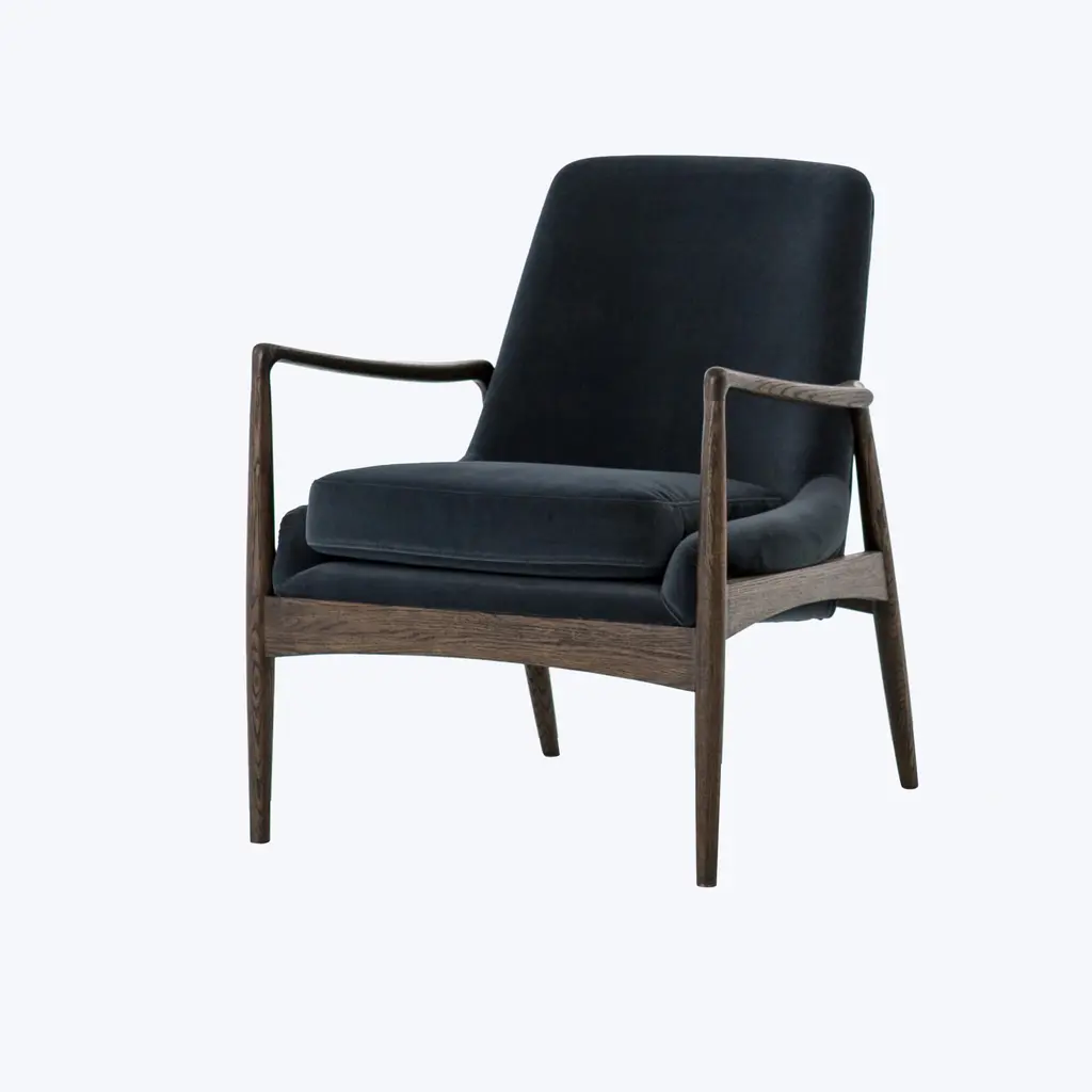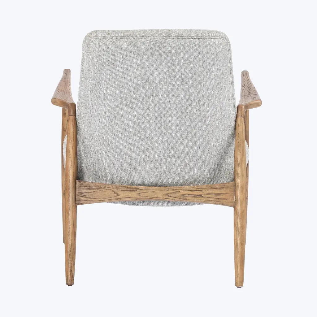 The Four Hands Braden Chair combines mid-century modern sophistication with deep comfort, featuring dramatic arms and a spacious 22.5" seat depth for ultimate relaxation. Offered in three fabrics, this chair is crafted from 100% high-quality polyester for durability and a soft touch. The 18" seat height and 24.5" arm height make it an inviting choice for lounging.ÊSet within a sculpted nettle wood frame, the Braden Chair exudes an architectural appeal, blending organic warmth with refined structure. This accent chair brings a cozy yet luxurious aesthetic to any space with its balanced combination of bold lines and plush upholstery.