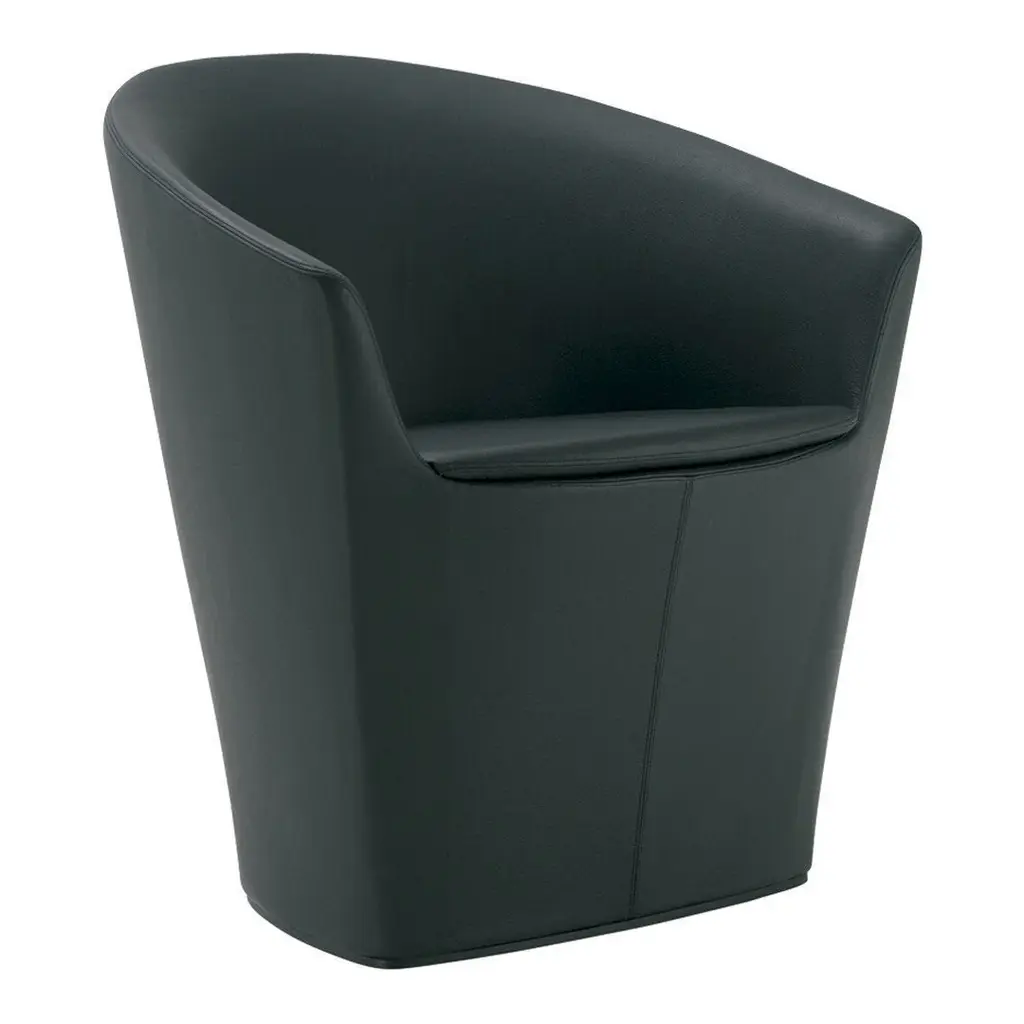 Lounge chair with upholstered seat and backrest and wooden baseboard. Brandy is a highly versatile collection of armchairs and lounge chairs with an embracing and comfortable body. This large collection of seating is constructed of an upholstered oak plywood shell, with flexible foam and either wood or aluminum base. The Brandy Collection is suitable for corporate, residential or public spaces.