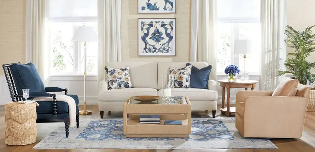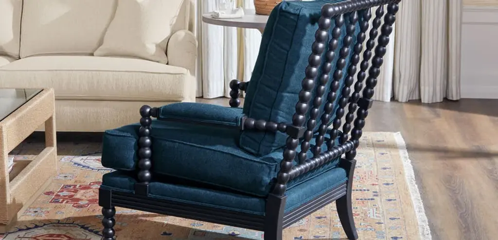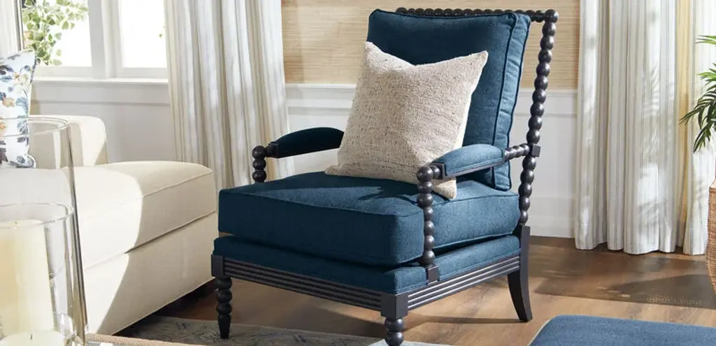 With stylish spindle-turned legs and arms and tight back, the Brant chair resembles an antique library chair, but we've updated it to feature a deep, wide cushioned seat for comfort and a more modern scale. A coordinating ottoman is also available.