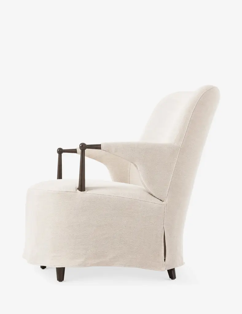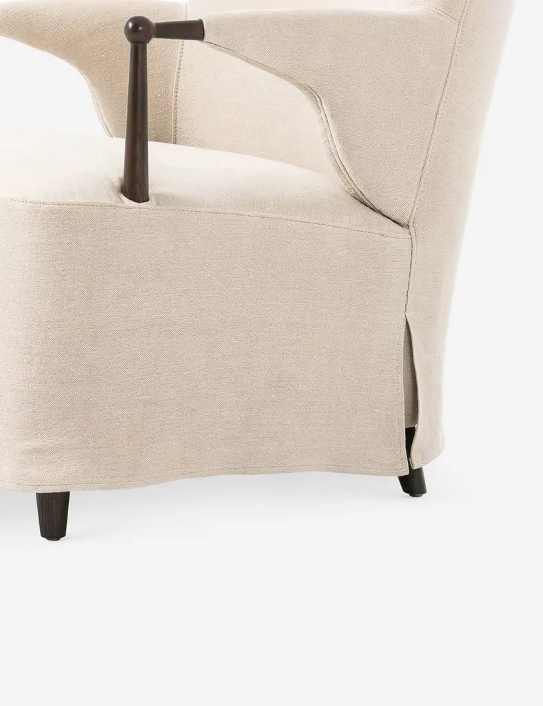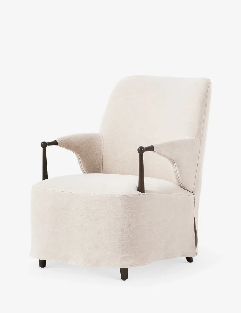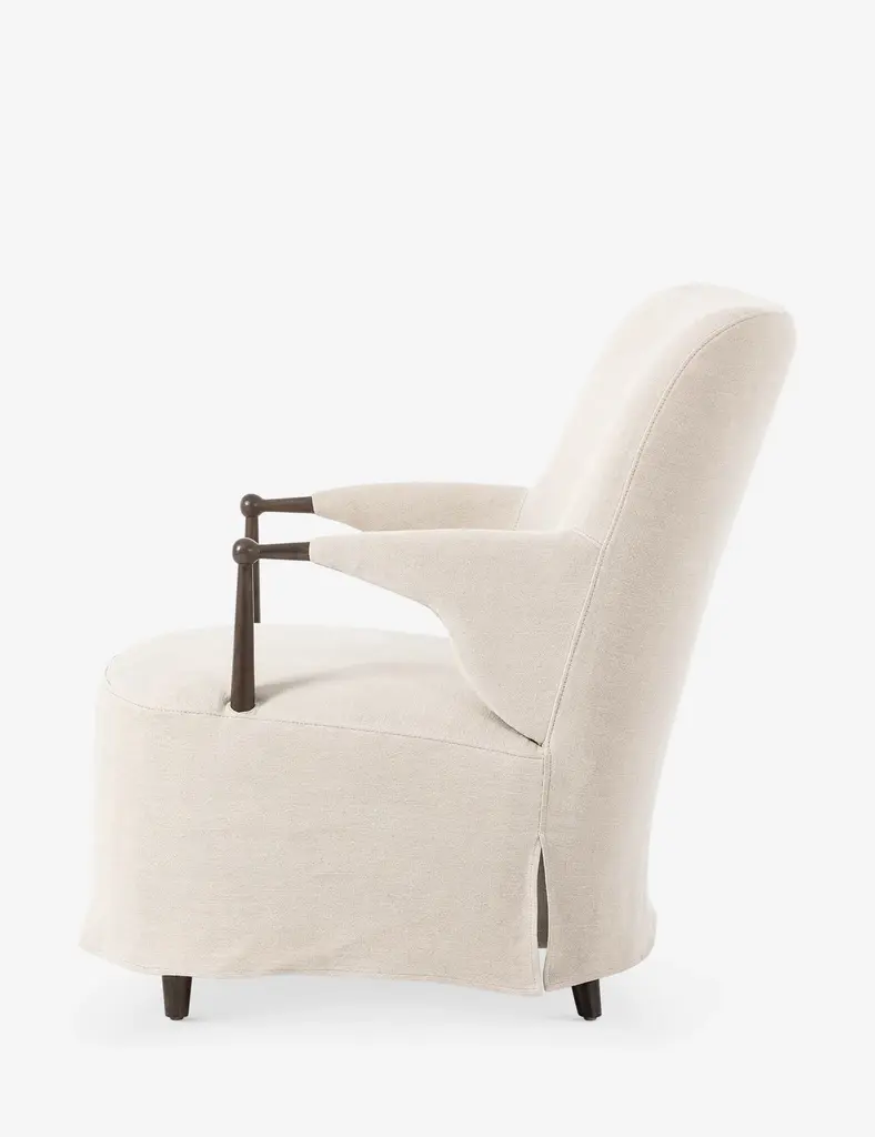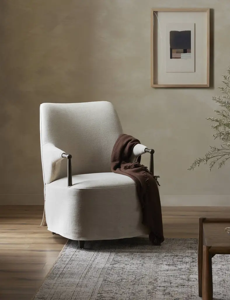 Four Hands brings their exceptional craftsmanship to a timeless collection rooted in Amber Lewis' perennial California style. A classic slipcover pairs with distressed oak in a modern accent chair that brings refined dimensionality to your seating area. Its tall back and S-spring seat create exceptional comfort for an occasional chair that combines the best of style and comfort.