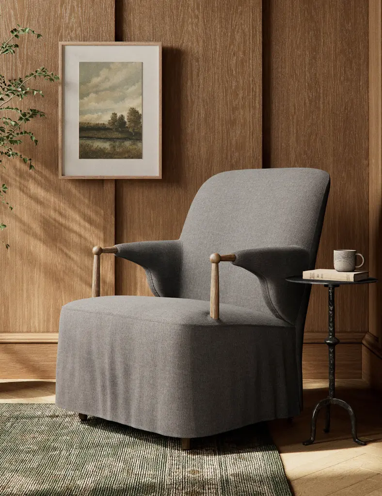 Four Hands brings their exceptional craftsmanship to a timeless collection rooted in Amber Lewis' perennial California style. A classic slipcover pairs with distressed oak in a modern accent chair that brings refined dimensionality to your seating area. Its tall back and S-spring seat create exceptional comfort for an occasional chair that combines the best of style and comfort.
