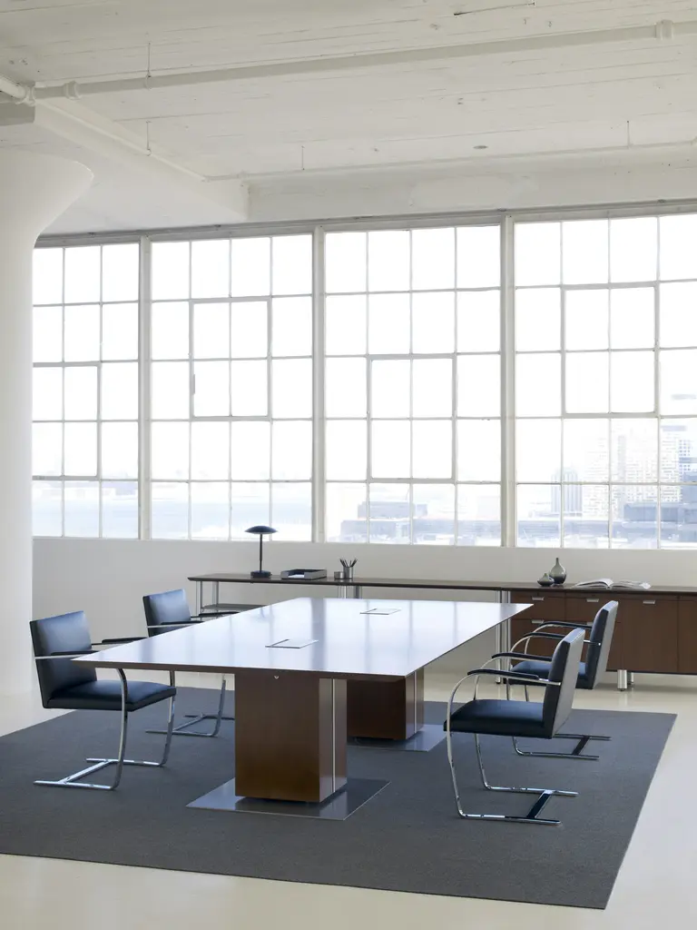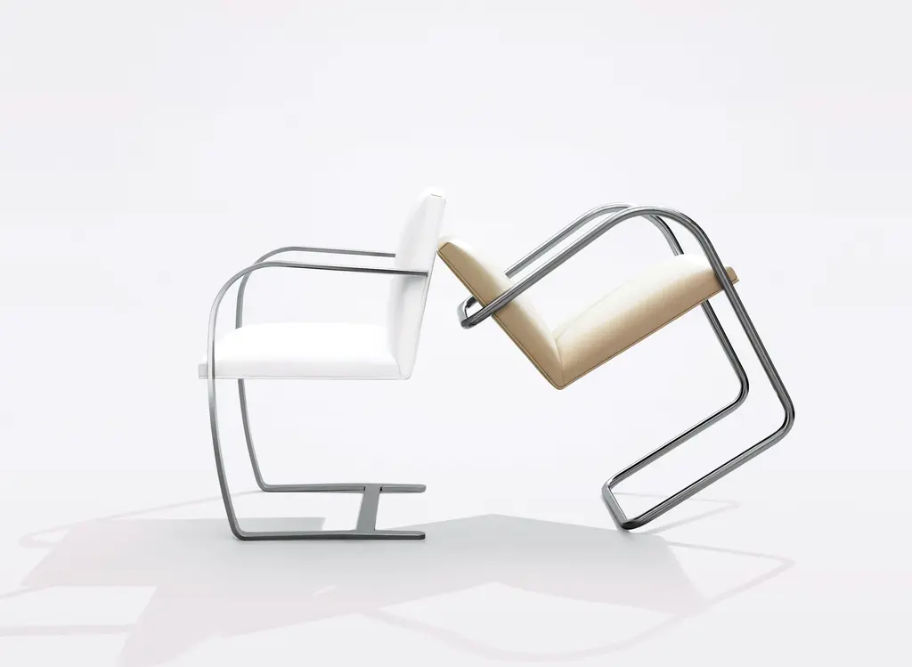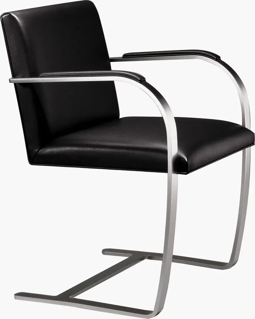 The Brno Flat Bar Chair (1930) offers the comfort of an armchair without the stuffiness or bulk. The triple-plated chrome, cantilevered bar stock steel lends the chair its strength, while the padded full-grain Spinneybeck leather seat will only get better with age. The Brno Flat Bar Chair is a registered trademark of Knoll, Inc., manufactured by Knoll according to the original and exacting specifications of the designer. Made in Italy.