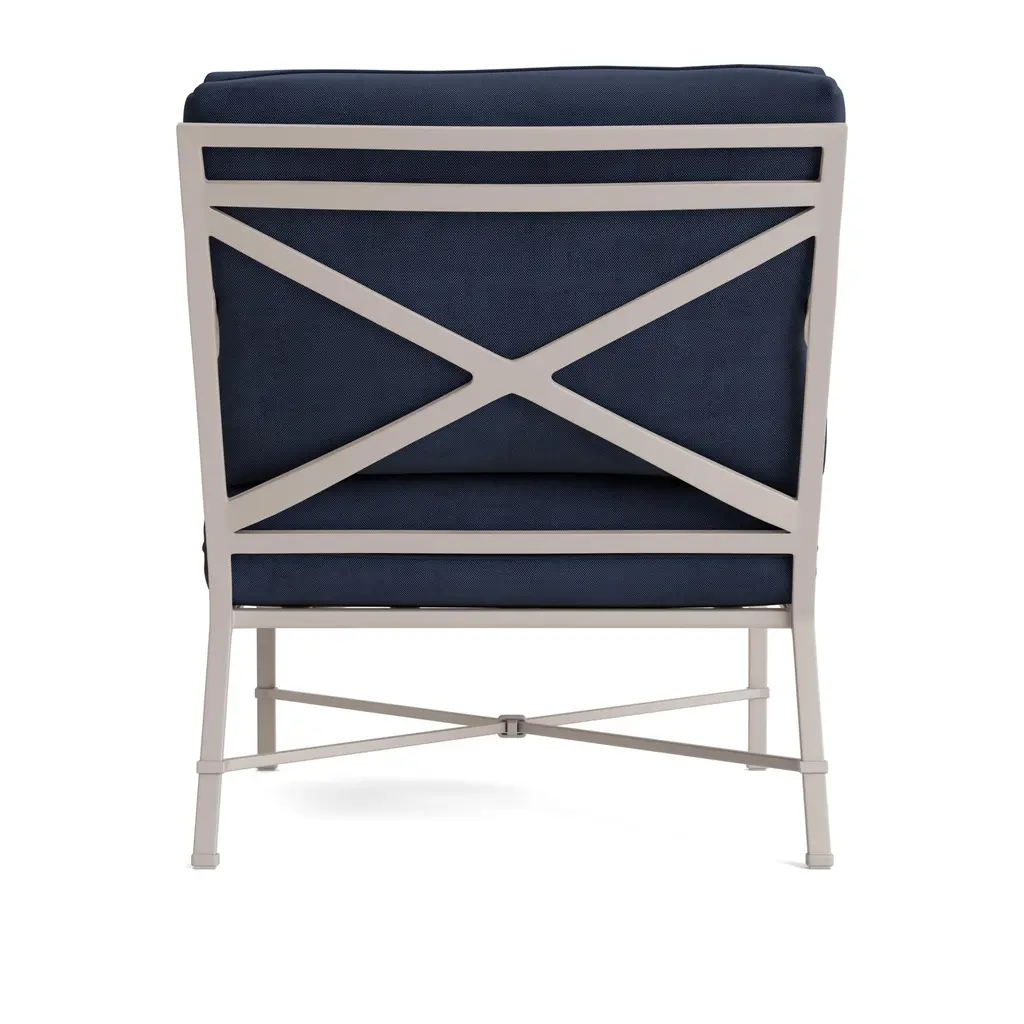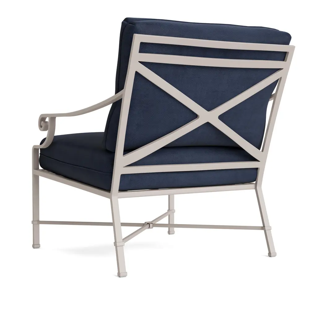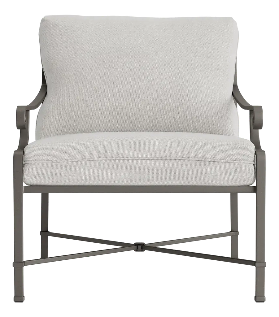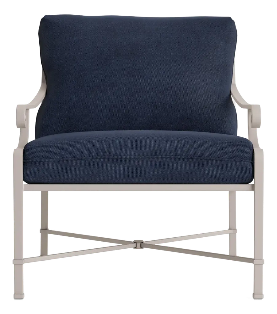 Venetian by Richard Frinier features a refined silhouette highlighted by timeless Neoclassic details. The x-back and cross-stretcher are framed by elegantly scaled rectangular lines, including a subtly flared and contoured back. Gracious spiral volute details at the end of the arms, architectural banding details on the legs, and the cross-stretcher are proportionately placed to enhance the overall balance. Care & Maintenance: Wash your furniture with a solution of mild detergent and water, rinse with clear water, and dry thoroughly. Assembly Required? No Extruded and cast aluminum frames. Extruded aluminum frames are affordable, easy to clean, and resistant to corrosion. Cast aluminum offers enhanced durability with added resistance to wind/weather and corrosion Powder-coated frames.Powder coating adds to the aluminum’s durability, providing a protective barrier against weather conditions and corrosion All cushions utilize the highest grade of performance outdoor fabrics. Not only are they soft to the touch, they’re also incredibly stain and weather resistance and offer long lasting color Cushions use a high-grade foam comparable to indoor upholstered seating. The foam is layered with 100% virgin fiber fill fitted for down-like comfort. Each cushion is then tailored with a polyester water-resistant barrier to prevent water from reaching the foam or fiber fill. To ensure industry leading design and quality our products undergo rigorous structural and environment testing. Frames undergo weighted testing and each finish is subject to UV testing to guarantee lasting quality.
