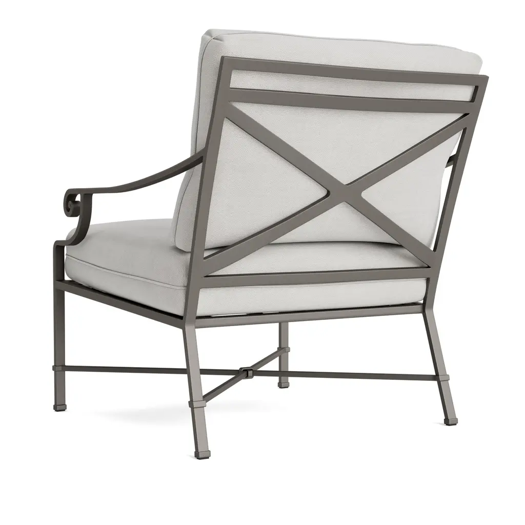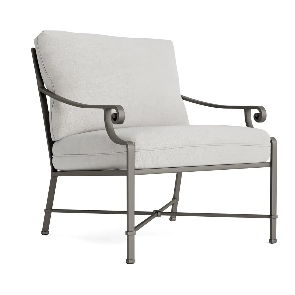 Venetian by Richard Frinier features a refined silhouette highlighted by timeless Neoclassic details. The x-back and cross-stretcher are framed by elegantly scaled rectangular lines, including a subtly flared and contoured back. Gracious spiral volute details at the end of the arms, architectural banding details on the legs, and the cross-stretcher are proportionately placed to enhance the overall balance. Care & Maintenance: Wash your furniture with a solution of mild detergent and water, rinse with clear water, and dry thoroughly. Assembly Required? No Extruded and cast aluminum frames. Extruded aluminum frames are affordable, easy to clean, and resistant to corrosion. Cast aluminum offers enhanced durability with added resistance to wind/weather and corrosion Powder-coated frames.Powder coating adds to the aluminum’s durability, providing a protective barrier against weather conditions and corrosion All cushions utilize the highest grade of performance outdoor fabrics. Not only are they soft to the touch, they’re also incredibly stain and weather resistance and offer long lasting color Cushions use a high-grade foam comparable to indoor upholstered seating. The foam is layered with 100% virgin fiber fill fitted for down-like comfort. Each cushion is then tailored with a polyester water-resistant barrier to prevent water from reaching the foam or fiber fill. To ensure industry leading design and quality our products undergo rigorous structural and environment testing. Frames undergo weighted testing and each finish is subject to UV testing to guarantee lasting quality.