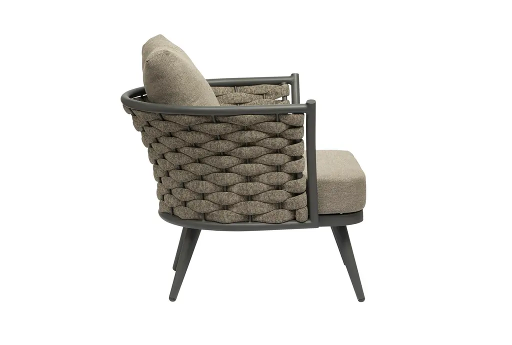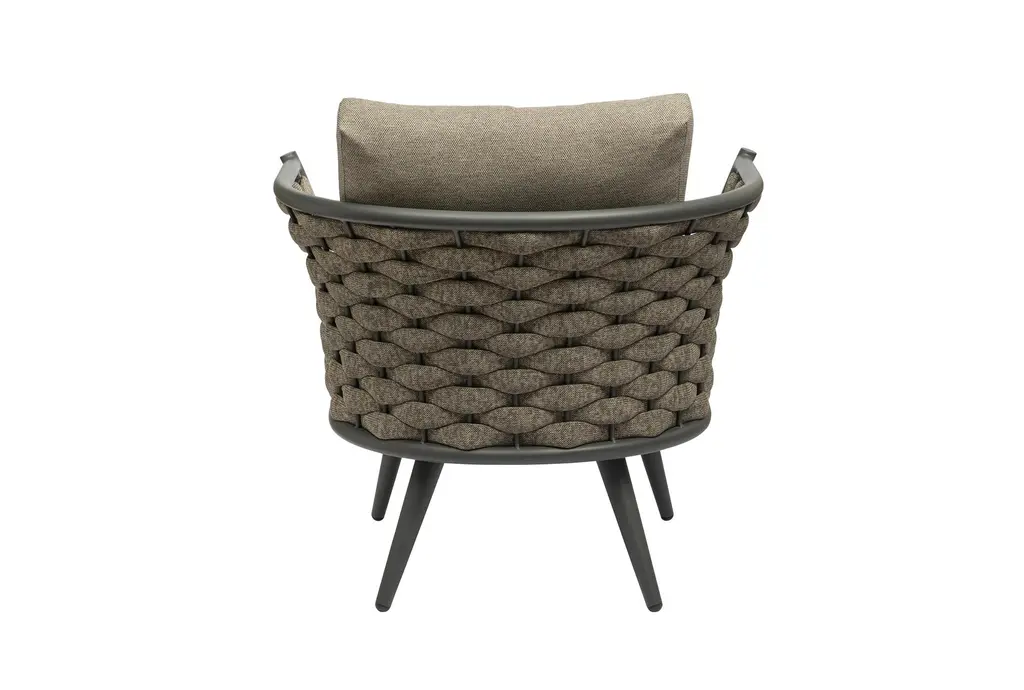 Brown Taupe Fabric Gray Metal Frame Outdoor Lounge Chair | With Arms