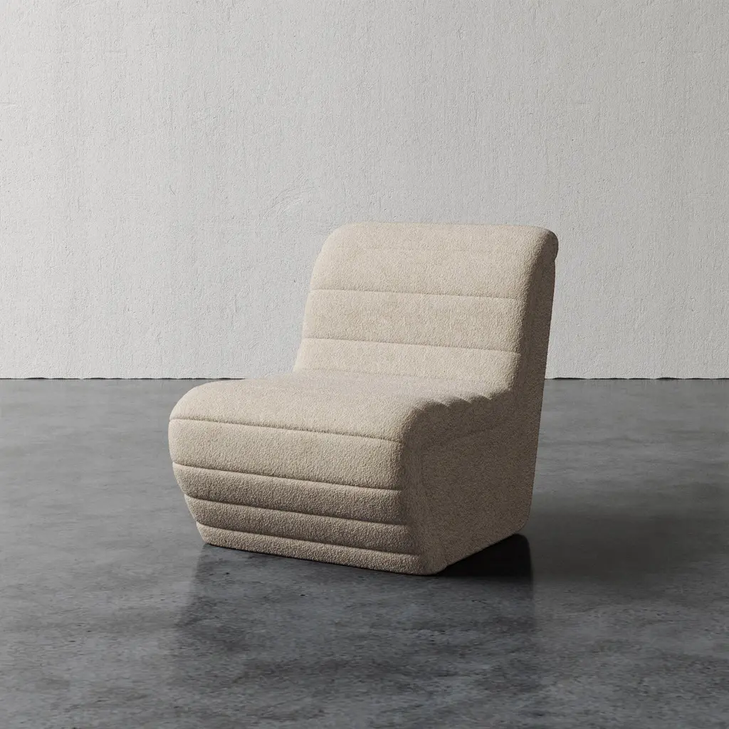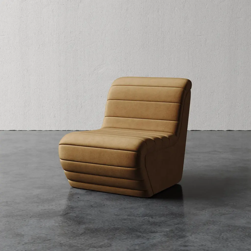 This perfectly proportioned lounge chair is inspired by midcentury Swiss design, reworked with a modernist perspective and upholstered with cleanly tailored horizontal channeling. Pair with the Brunoy ottoman for the ultimate in comfort. Available in both Leather and Fabrics.The Brunoy Chair is handmade by skilled artisans in North Carolina.