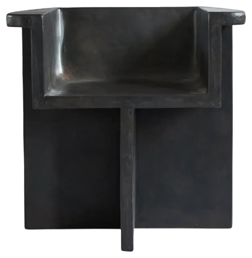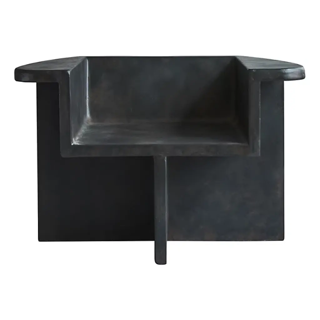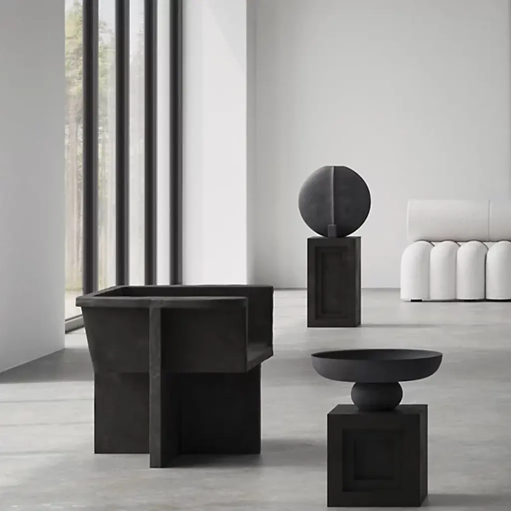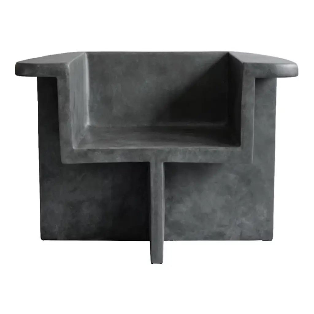 Inspired by the Brutalist architecture movement of the mid-20th century, the Brutus Lounge Chair from 101 Copenhagen is crafted from lightweight fiber concrete, offering a unique texture and easy mobility. Each chair is hand-painted, giving it a distinct, textured surface. The design skillfully balances sharp architectural lines with softer curves in the back and armrests, resulting in a sculptural piece that provides both striking visual appeal and exceptional seating comfort.