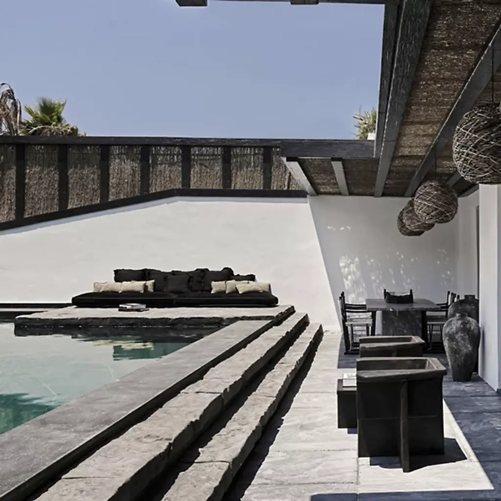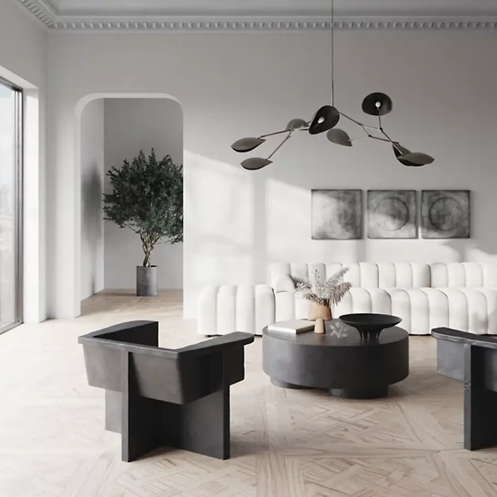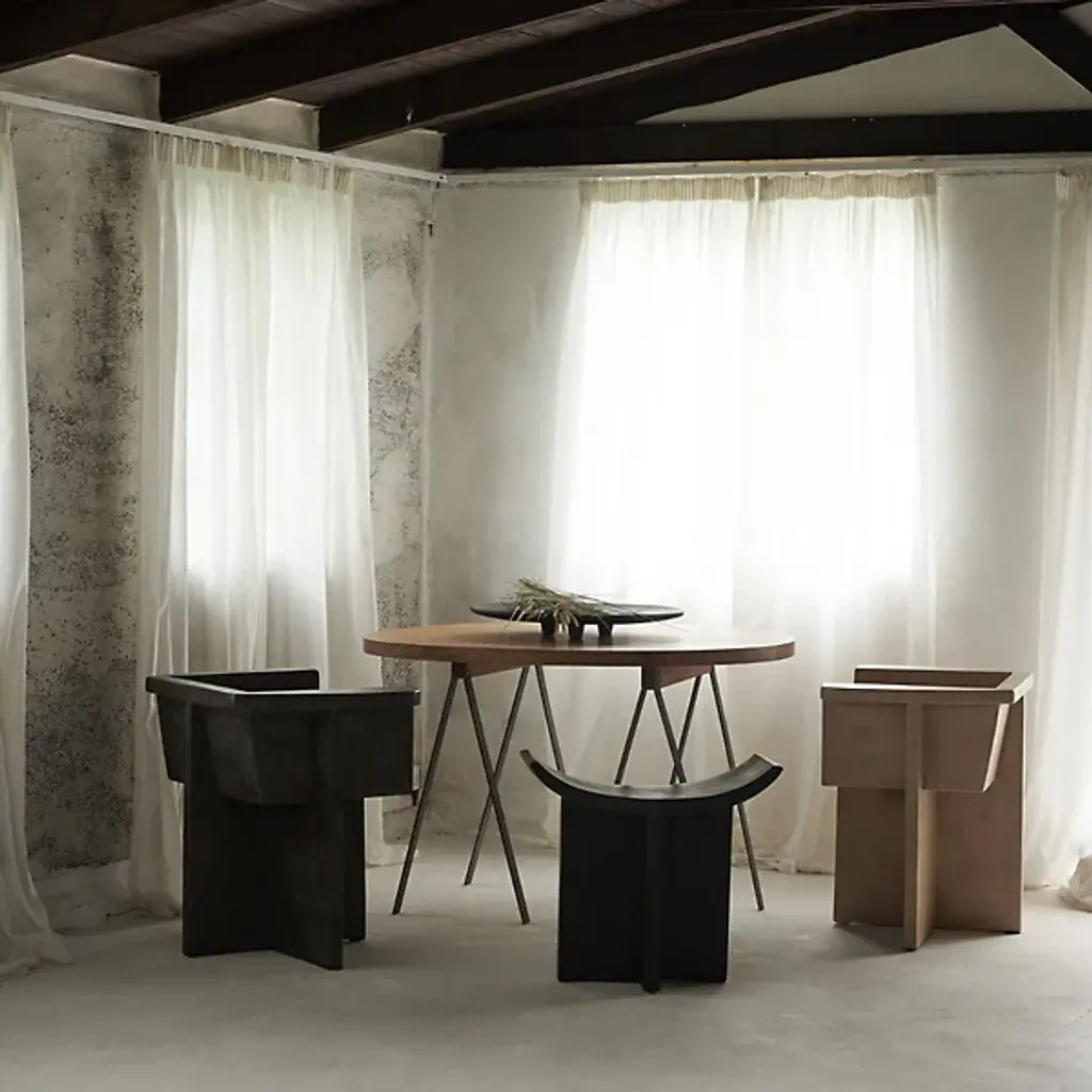 Inspired by the Brutalist architecture movement of the mid-20th century, the Brutus Lounge Chair from 101 Copenhagen is crafted from lightweight fiber concrete, offering a unique texture and easy mobility. Each chair is hand-painted, giving it a distinct, textured surface. The design skillfully balances sharp architectural lines with softer curves in the back and armrests, resulting in a sculptural piece that provides both striking visual appeal and exceptional seating comfort.