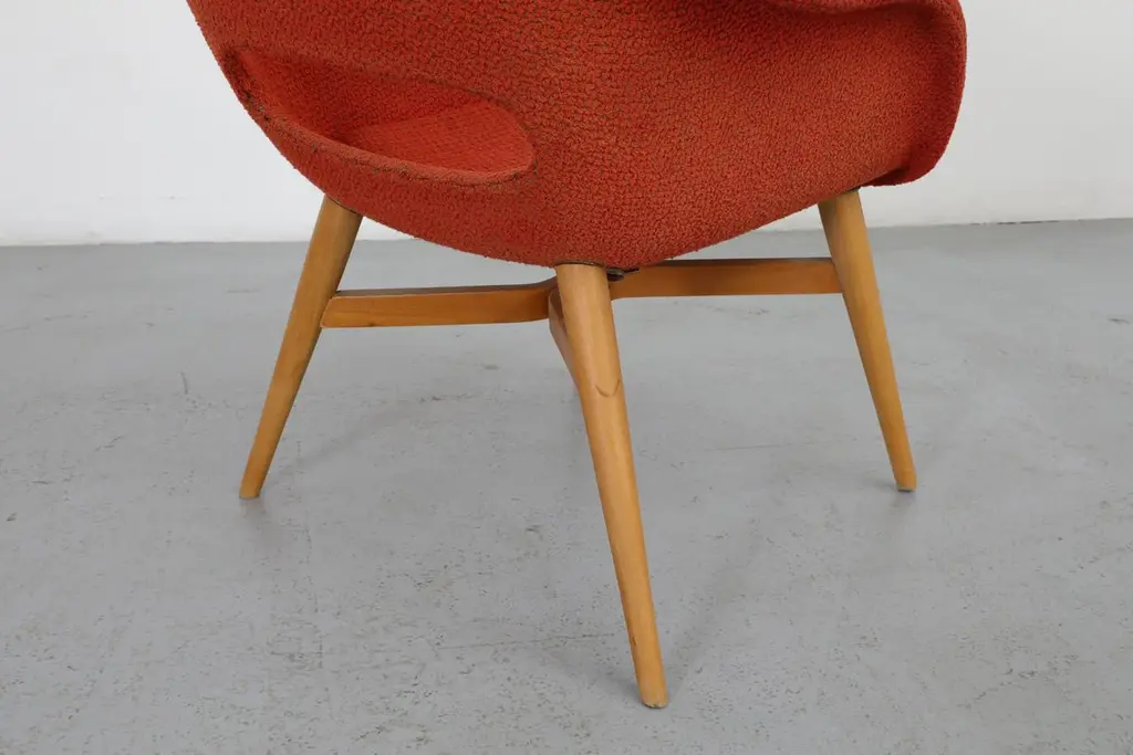 Assorted bucket lounge chairs by Miroslav Navrátil for Vertex in original condition with visible wear and many in need of reupholstery. Very worn. Legs are tapered birch with bent plywood detail. Inquire for counts, condition, color, etc. Sold as is.