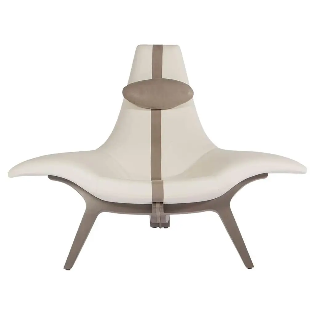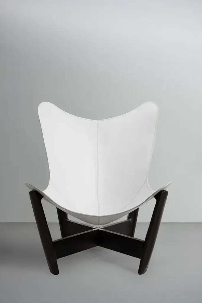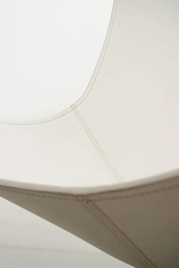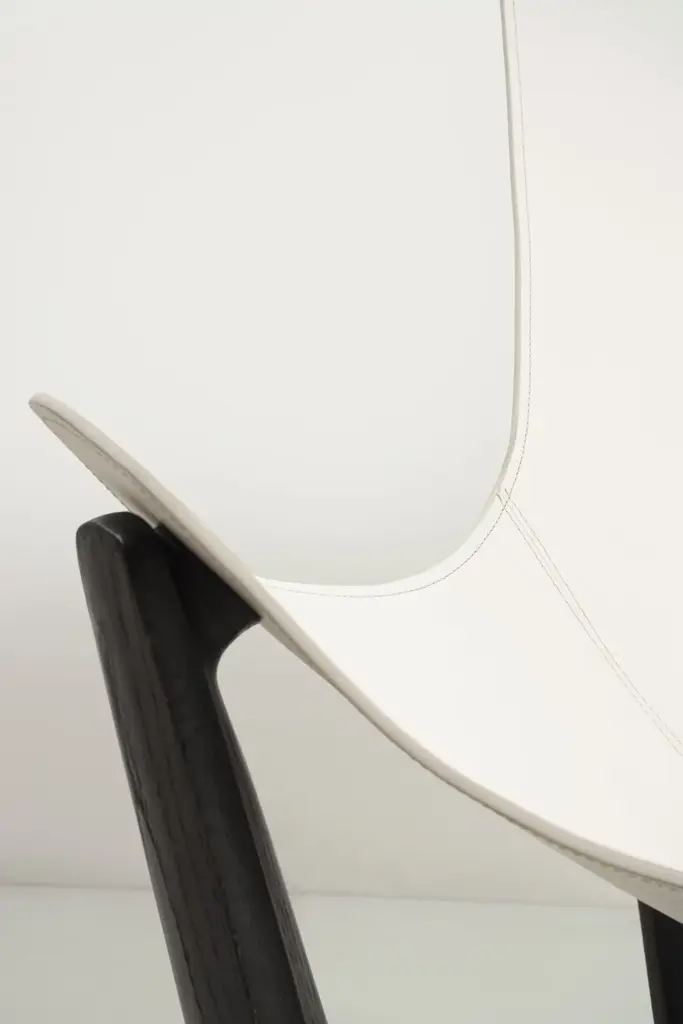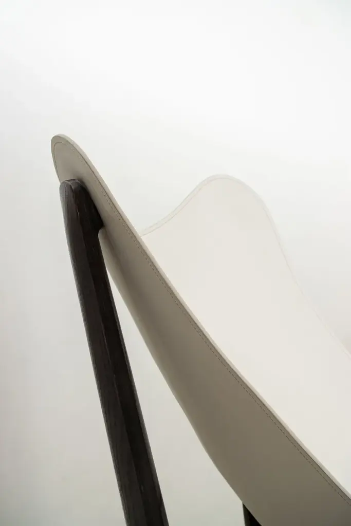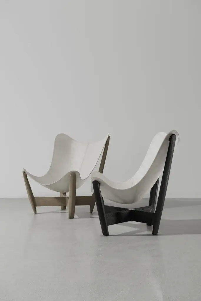 Buom reinvents a familiar archetype with sophistication. This solitary armchair combines the elegance of suspended comfort with the sensuality of a robust structure. Its leather seat is moulded after the silhouette of full-blown sails, known as buồm, in Vietnamese traditional boat, and through expert craftsmanship, appears as if it’s only touching the slanted legs. The solid oak frame enhances its sturdy support, with cross stretchers forming a visual dynamic with the seat’s undulating lines. BUOM is the timeless companion that embodies our demands for lightness and refinement.
