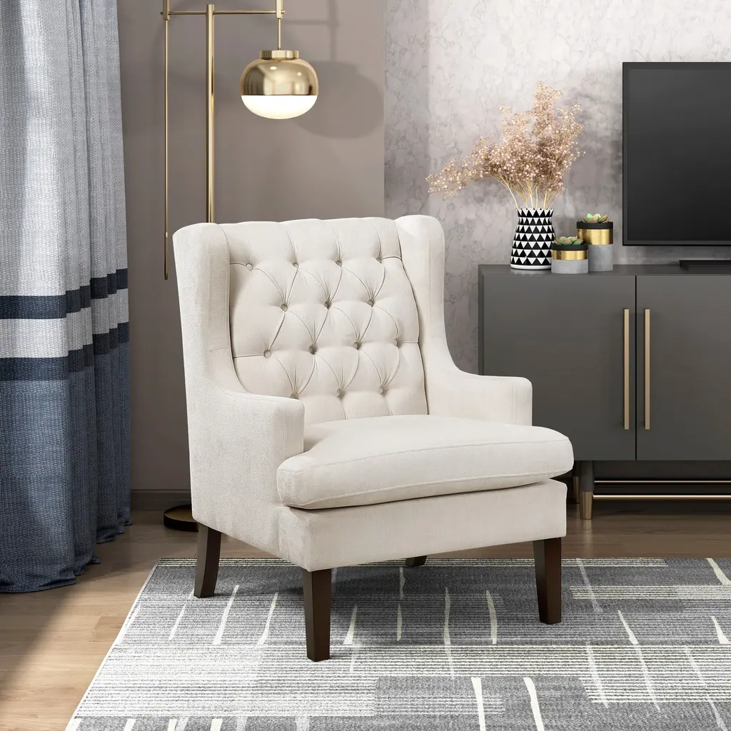 Button-Tufted Upholstered High Back Accent Chair - Gray