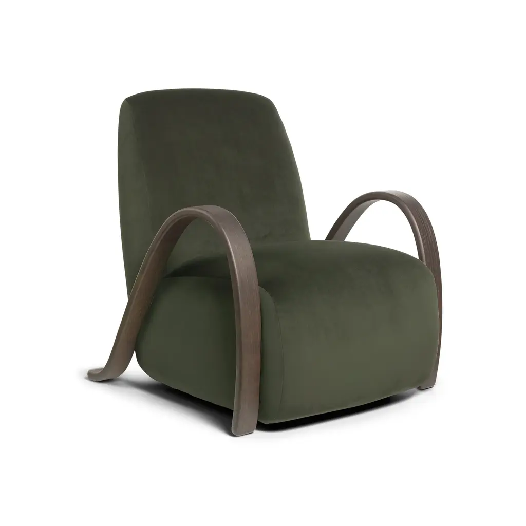 The Buur Lounge Chair effortlessly combines comfort and elegance, featuring a luxuriously cushioned seat and backrest. Designed in collaboration with Says Who, the chair has distinctive, curved armrests crafted from FSC™ certified oak that beautifully mimic the natural flow, enhancing its rounded design. With its smooth construction, the Buur Lounge Chair invites you to indulge in its plush upholstery and experience a truly enveloping embrace. With its vintage-inspired aesthetic, the Buur Lounge Chair serves as a stunning statement piece in any room.